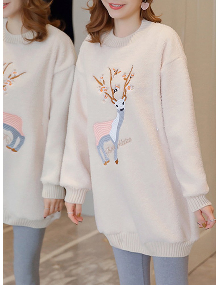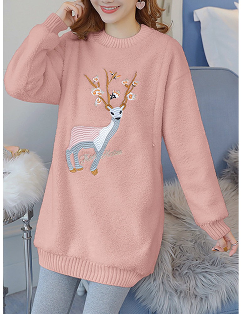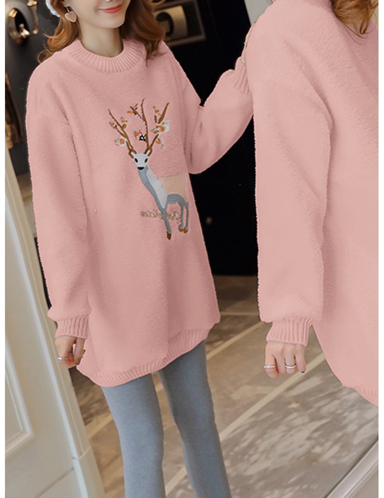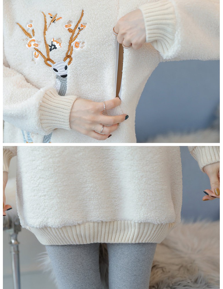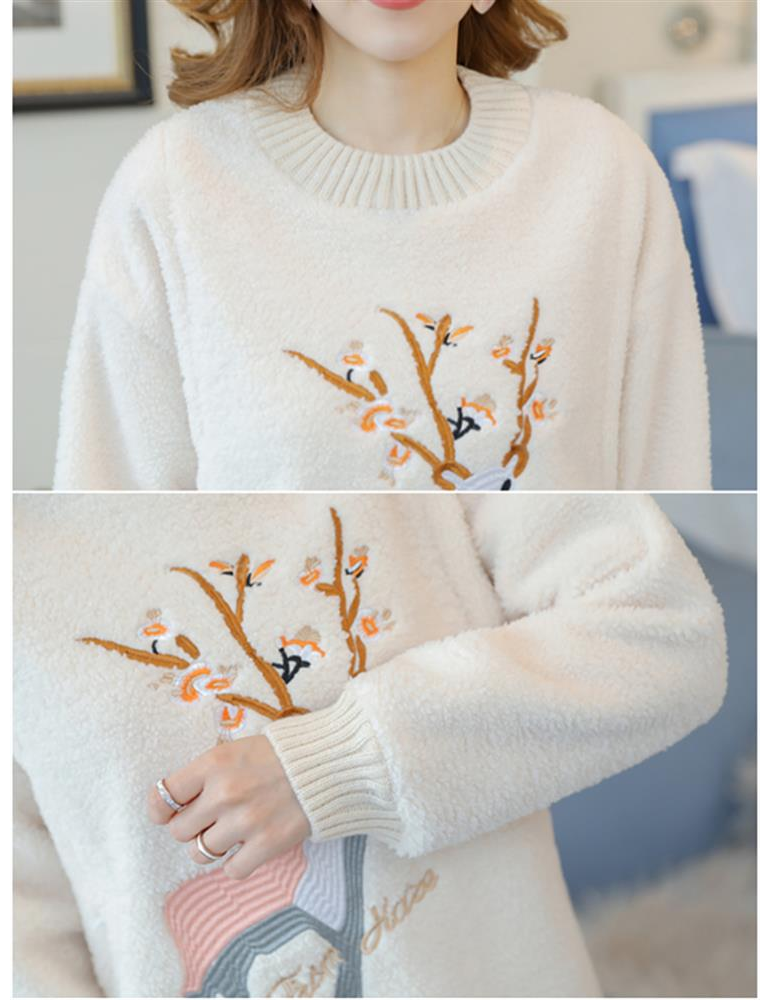 Embroidered Lamb Plus Velvet Padded Sweatshirt