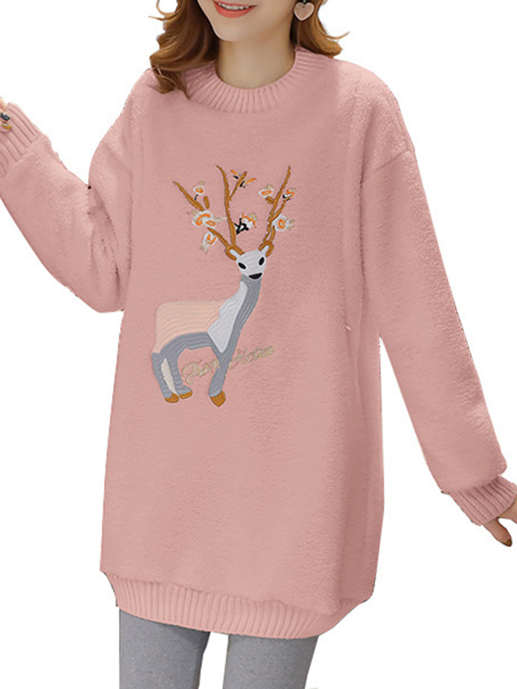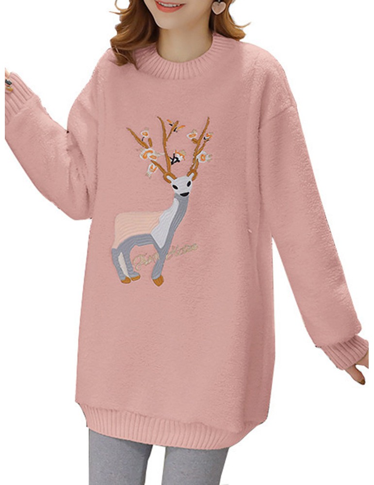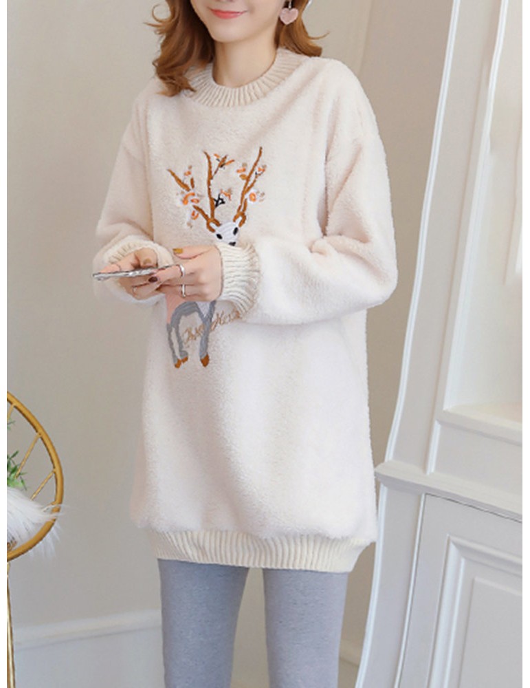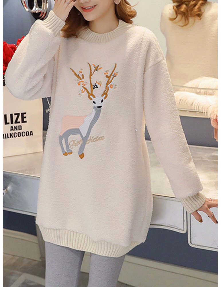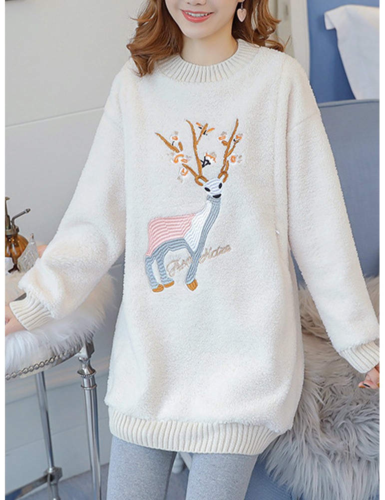 Embroidered Lamb Plus Velvet Padded Sweatshirt