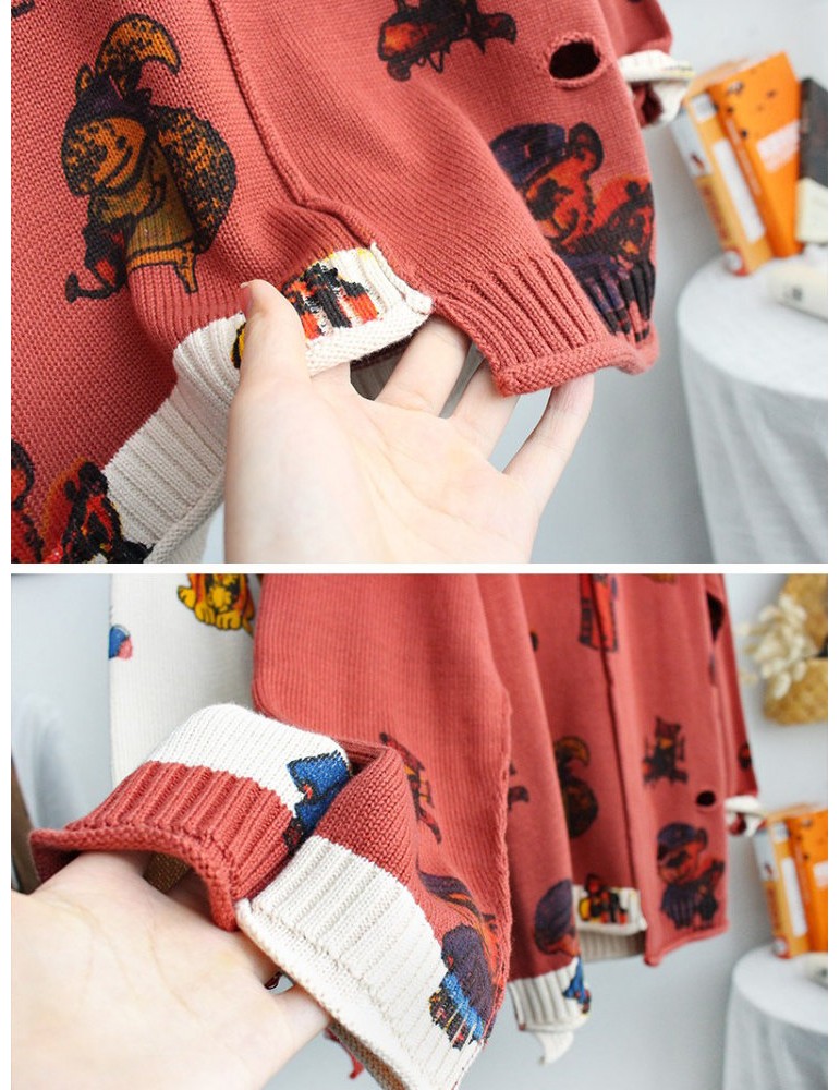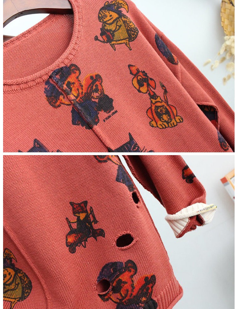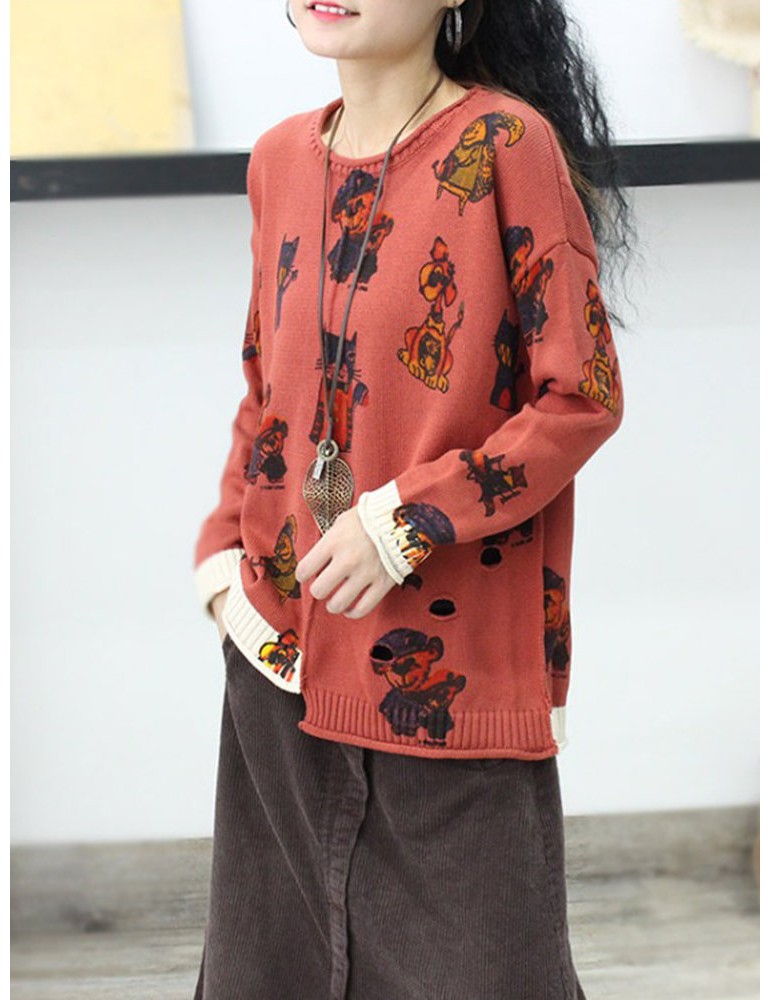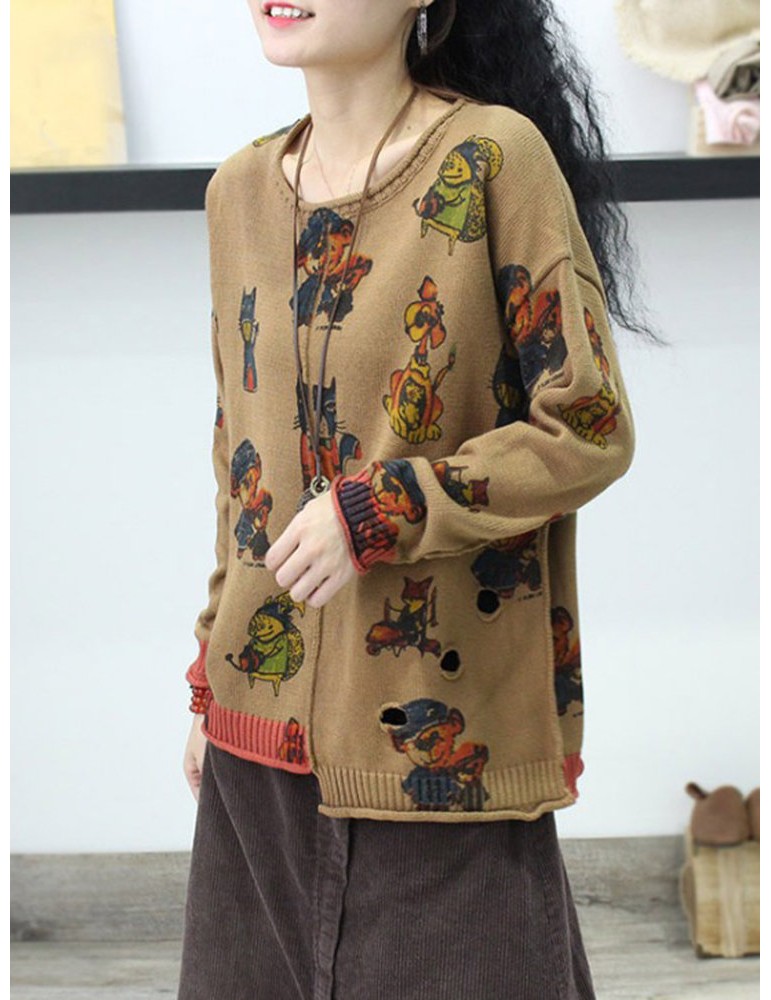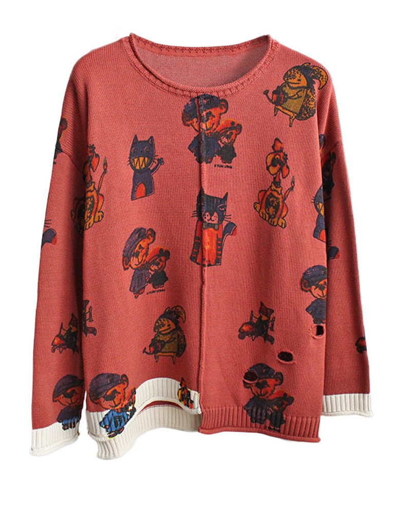 Cute Cartoon Print Long Sleeve Casual Pullover Sweater