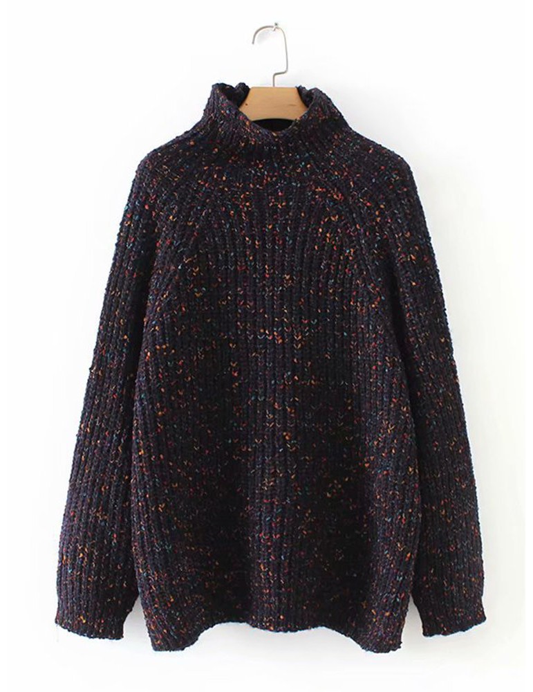 Turtleneck Solid Color Loose Long Sleeve Women Sweater