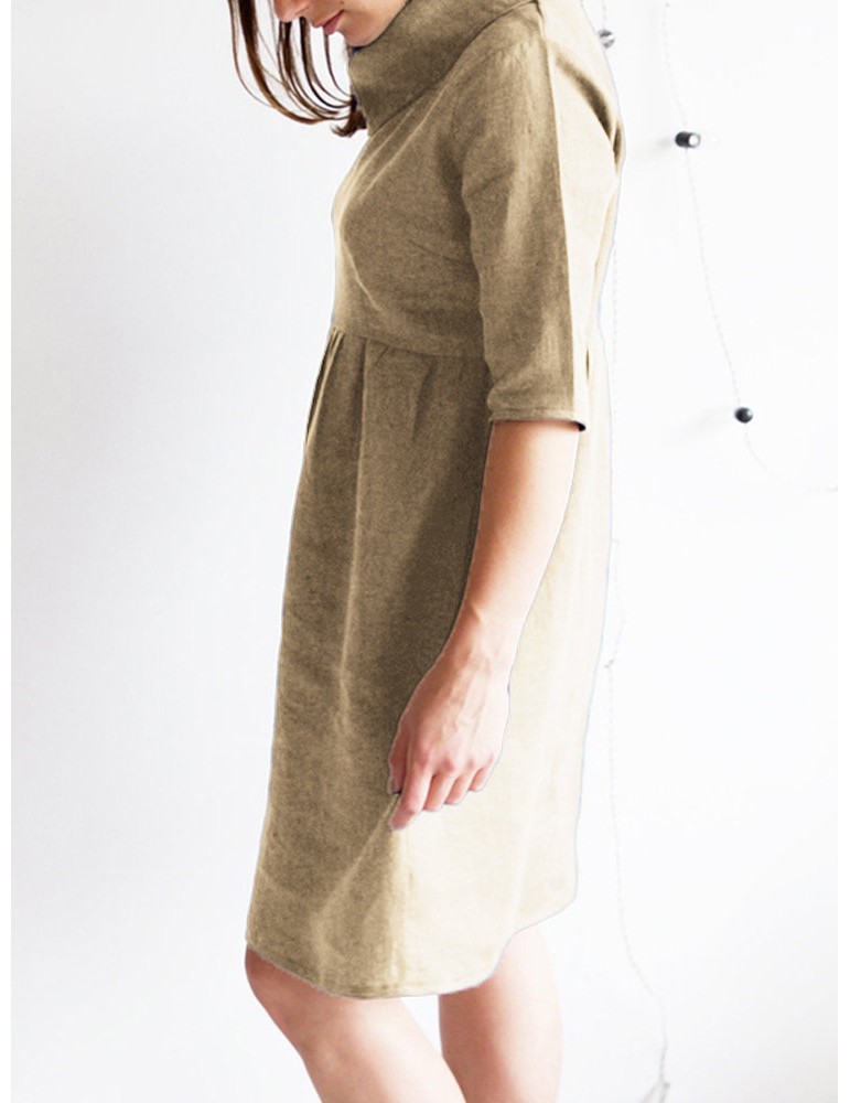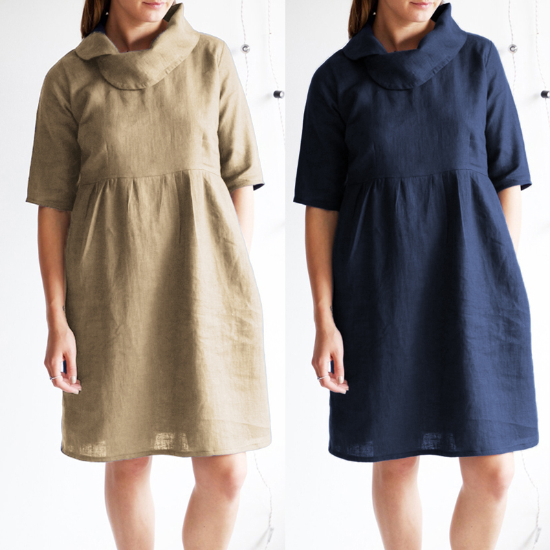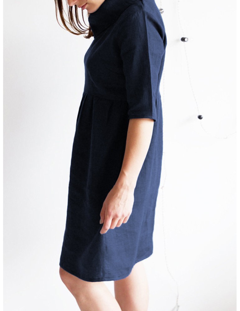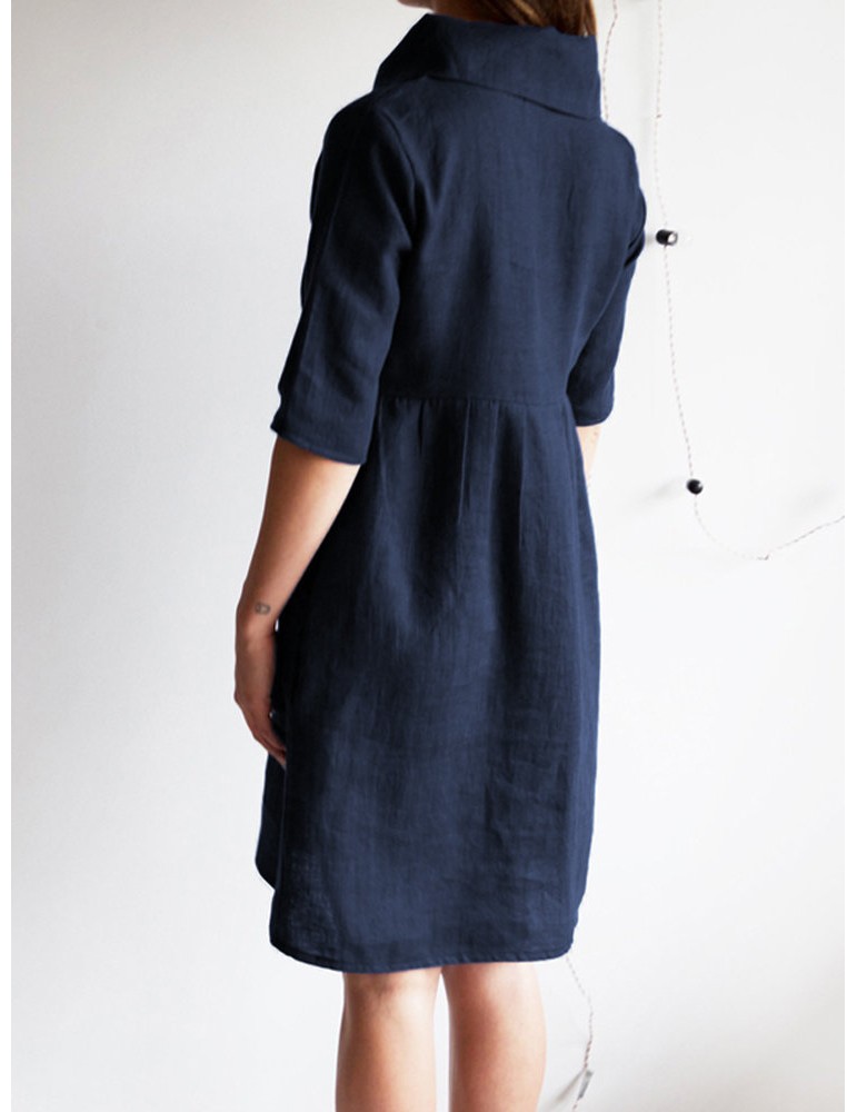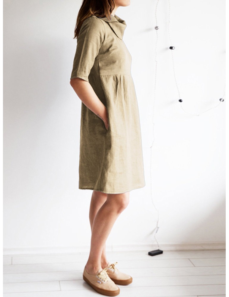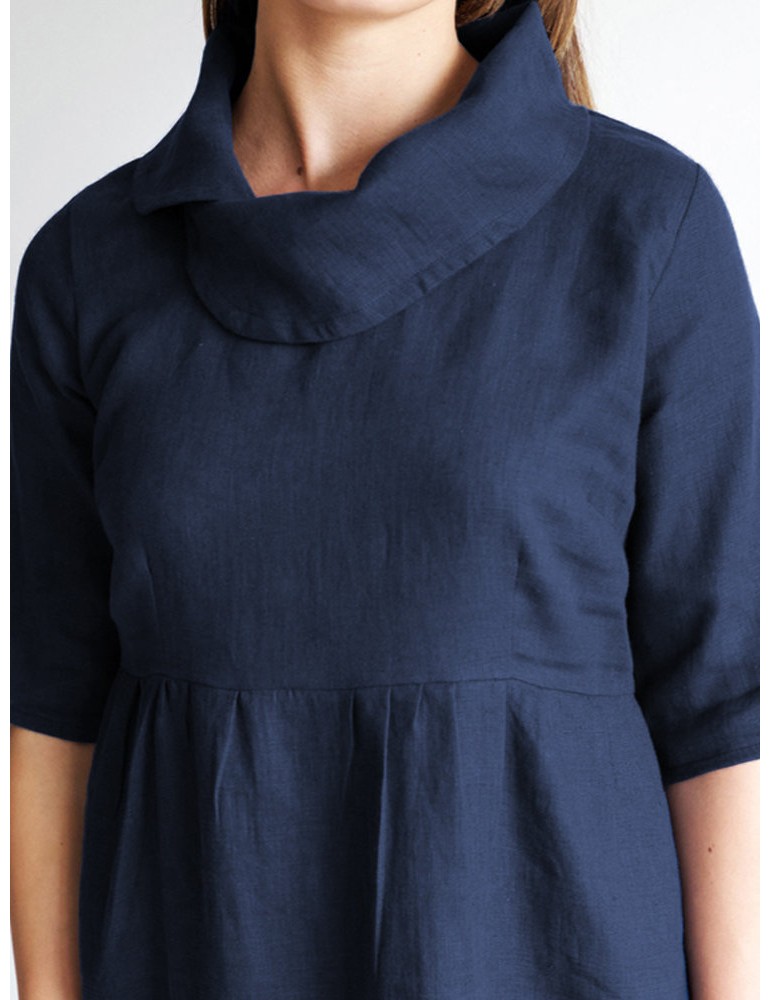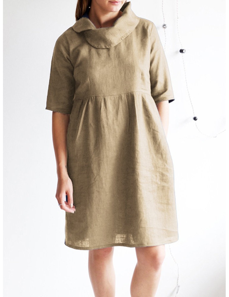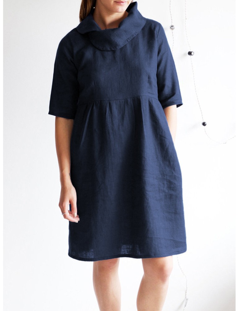 Vintage Solid Color Heap Collar Half Sleeve Plus Size Dress