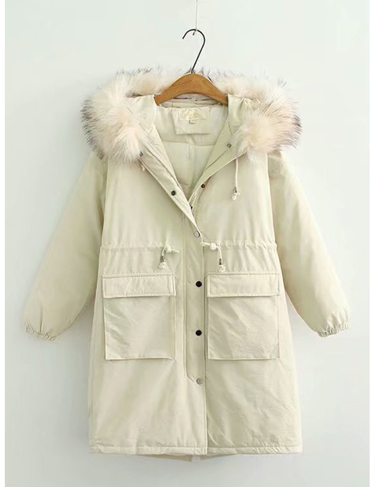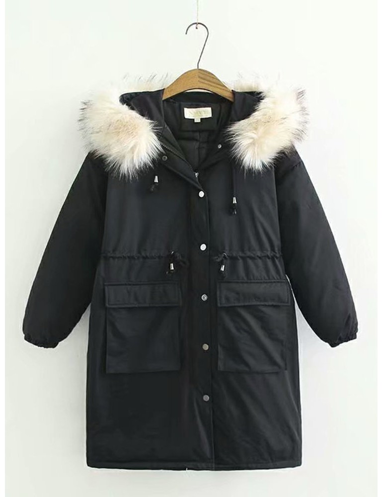 Faux Fur Hooded Pocets Casual Coat