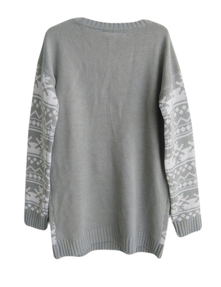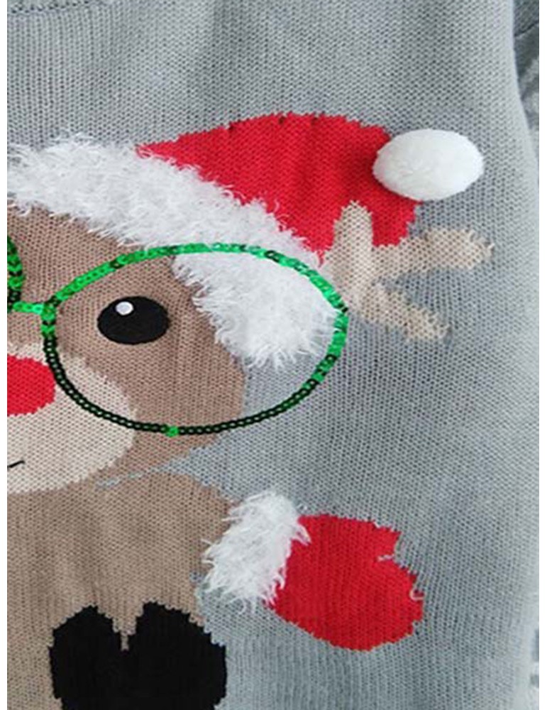Cartoon Print Long Sleeve Crew Neck Christmas Sweater