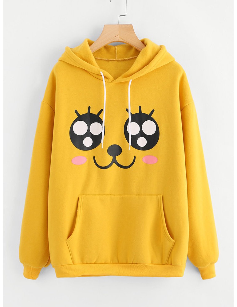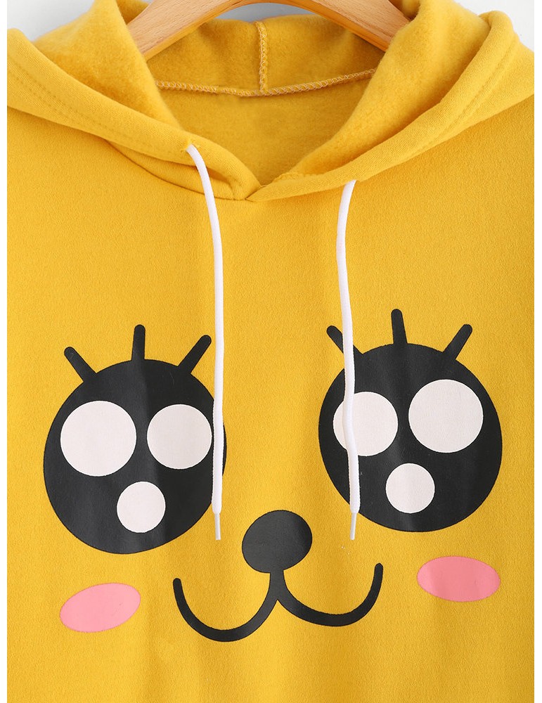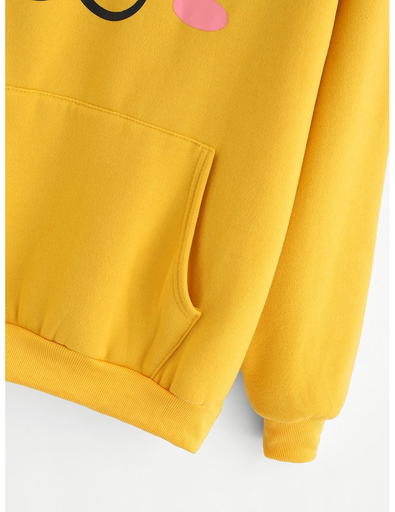 Casual Print Loose Drawstring Pocket Hoodie for Women