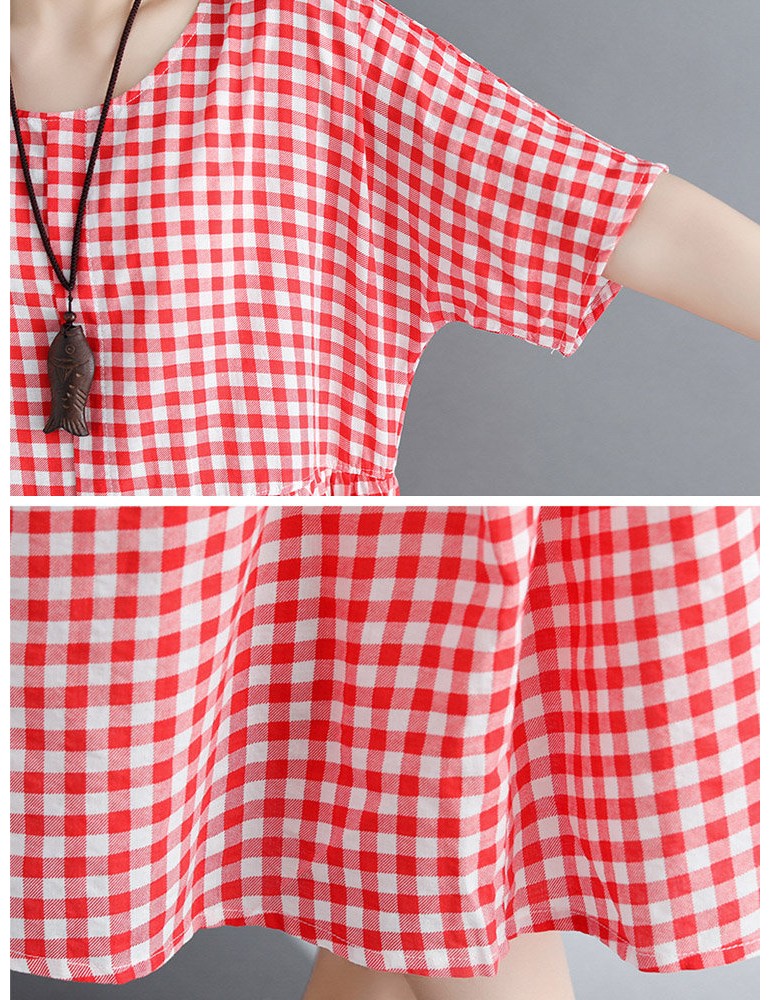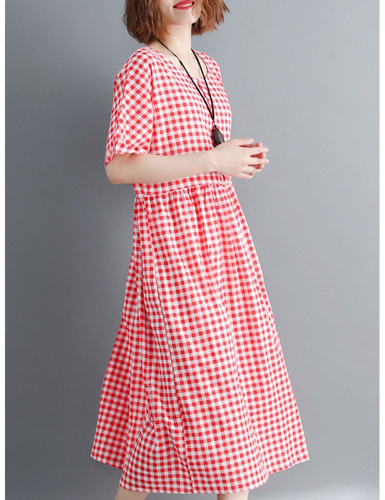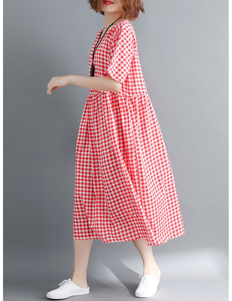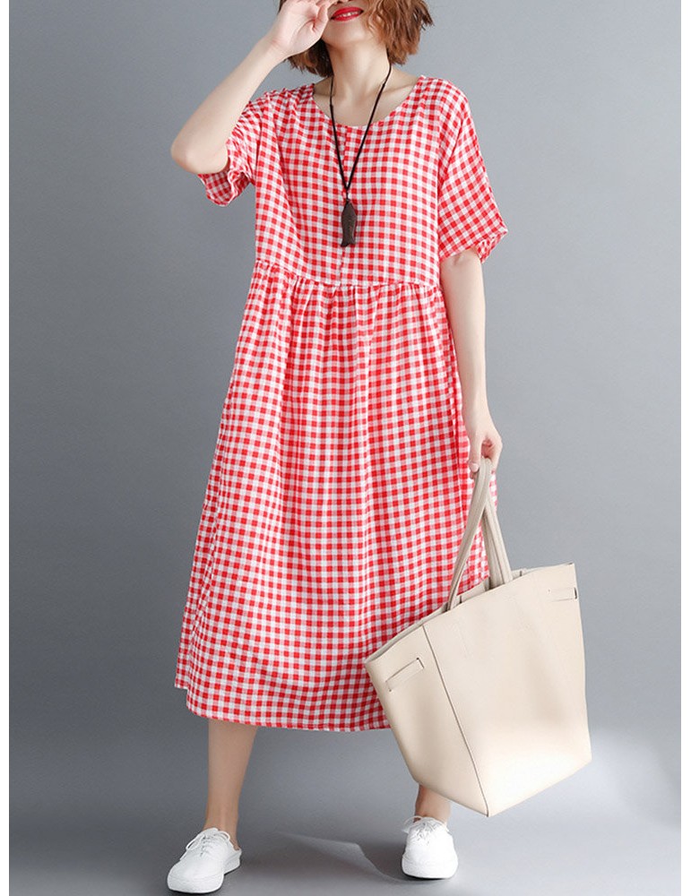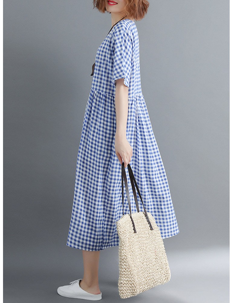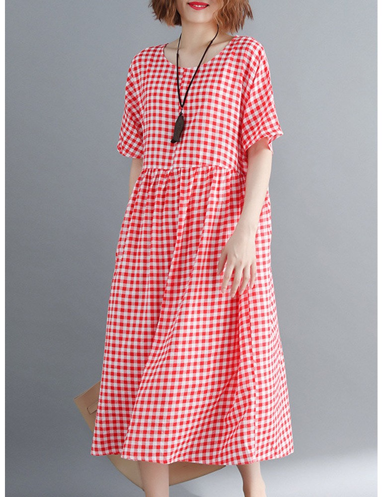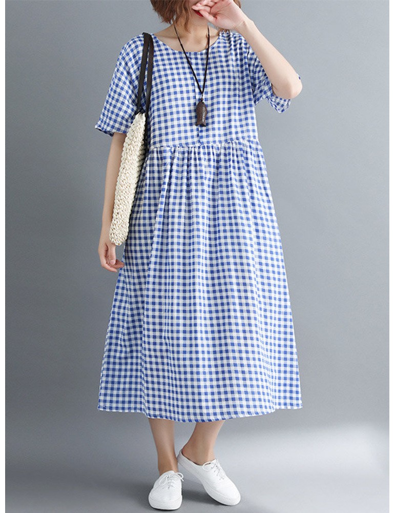 Casual Plaid Half Sleeve Maxi Dress for Women