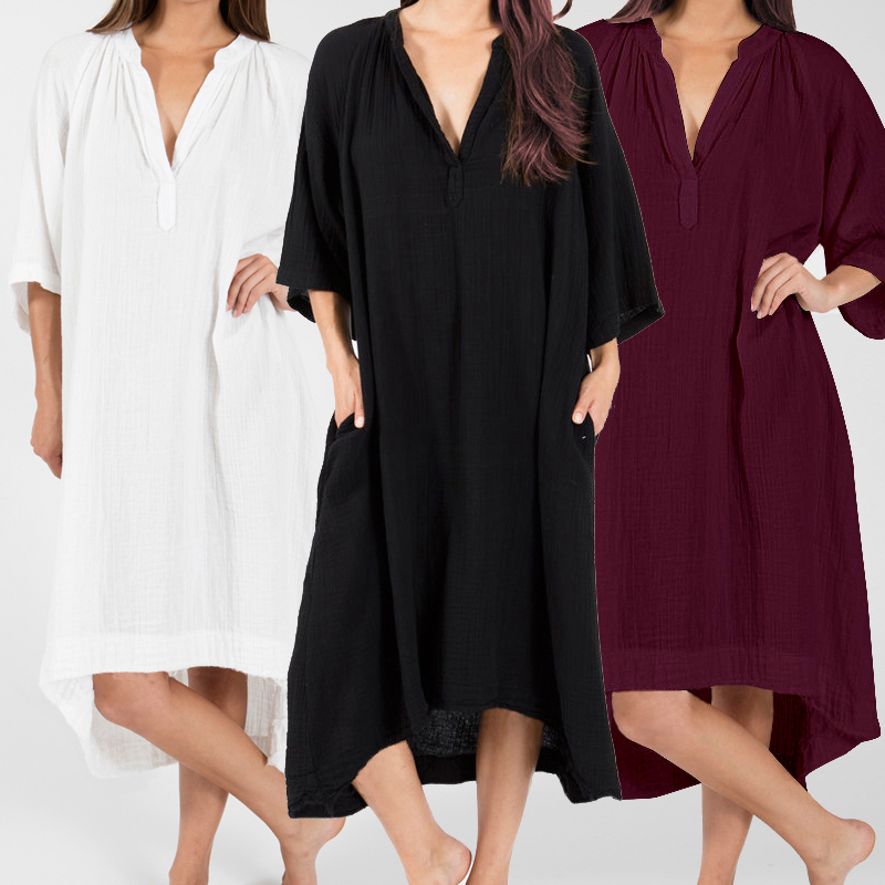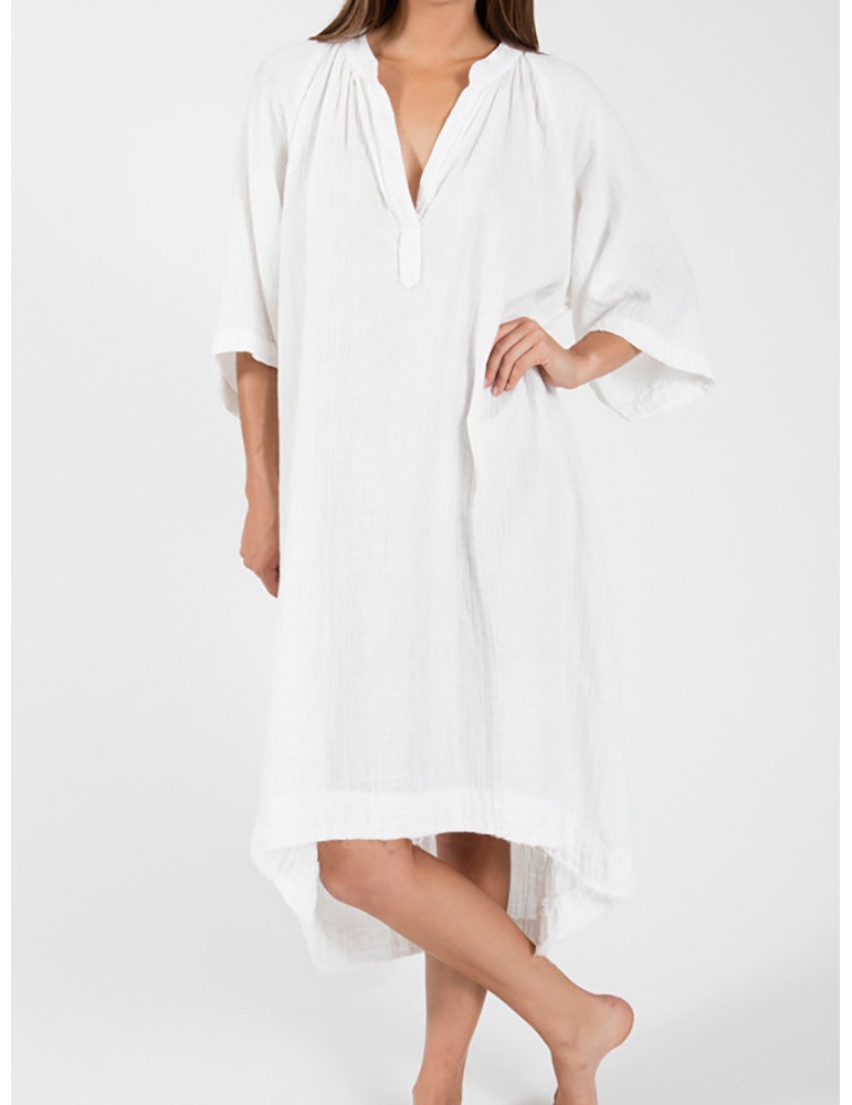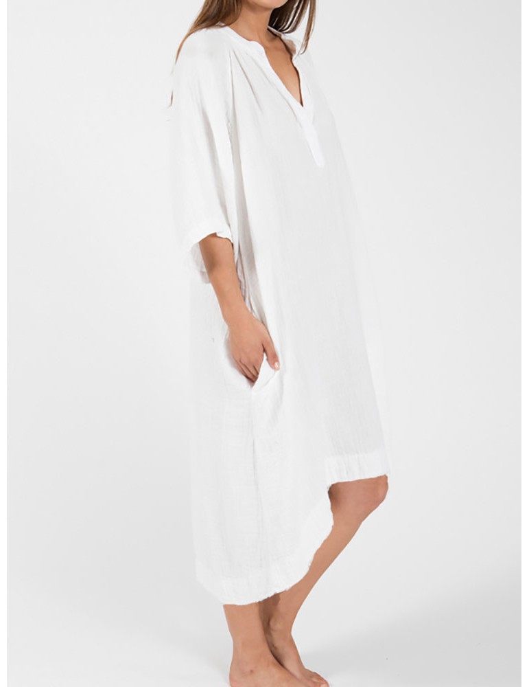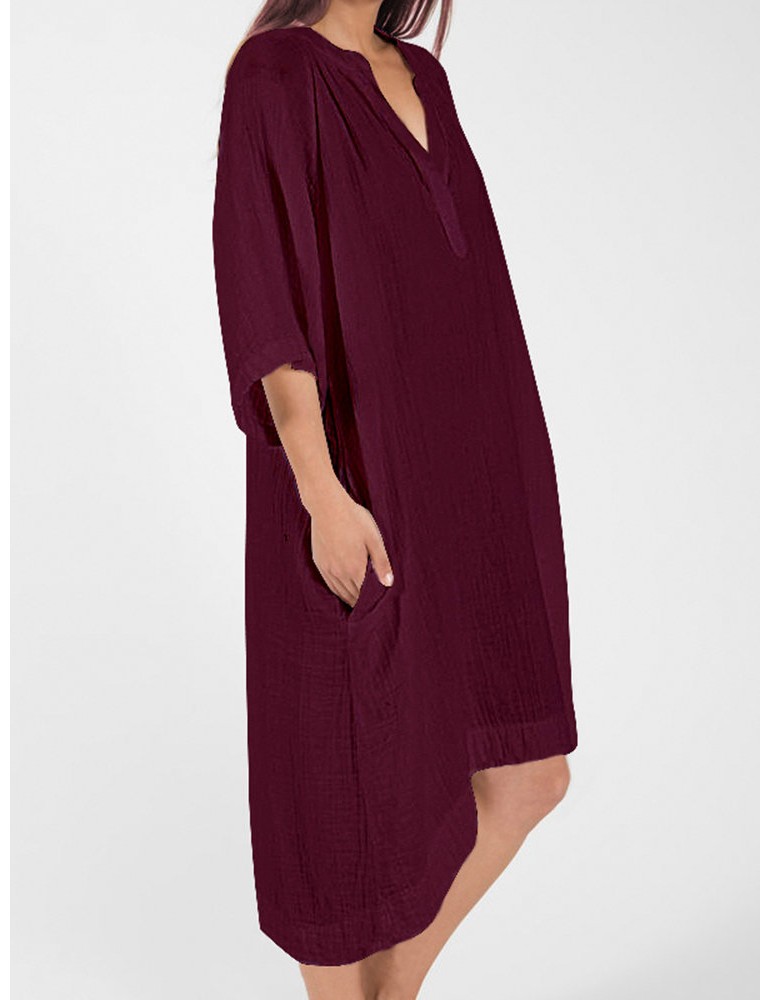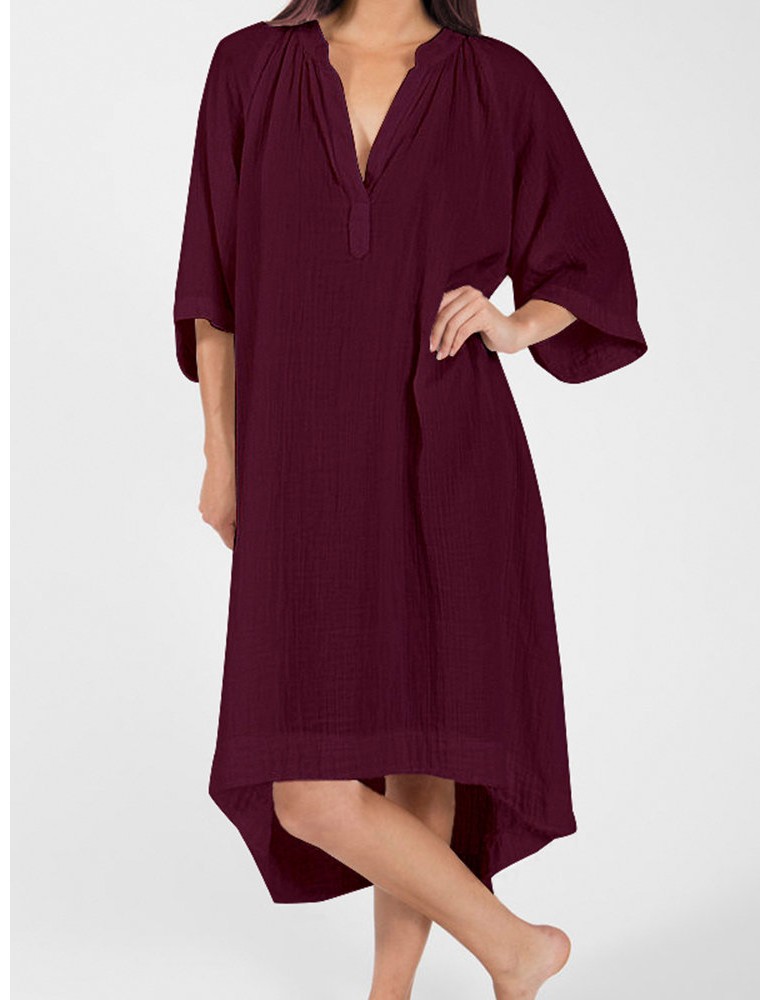 Casual V-neck 3/4 Sleeve High Low Loose Plus Size Dress