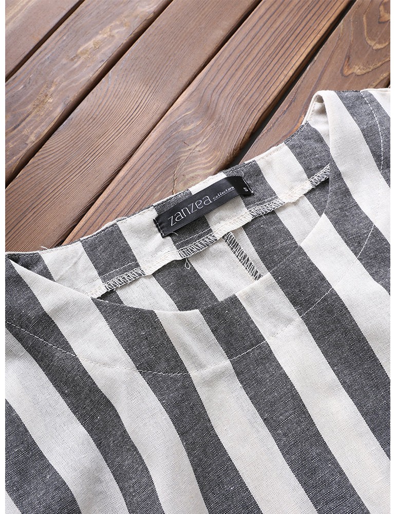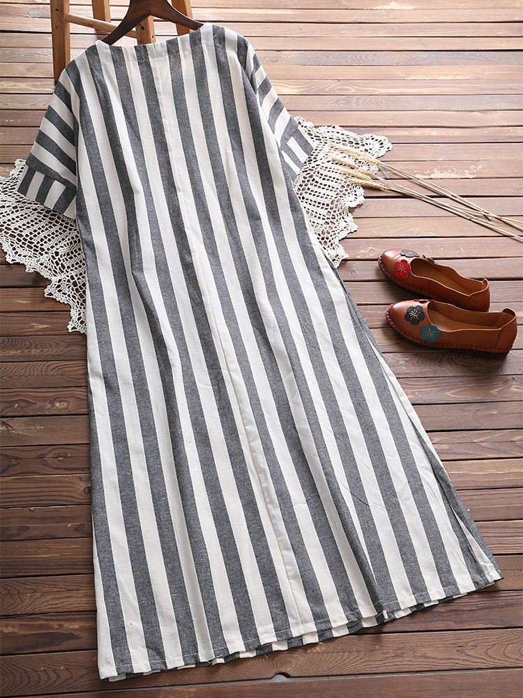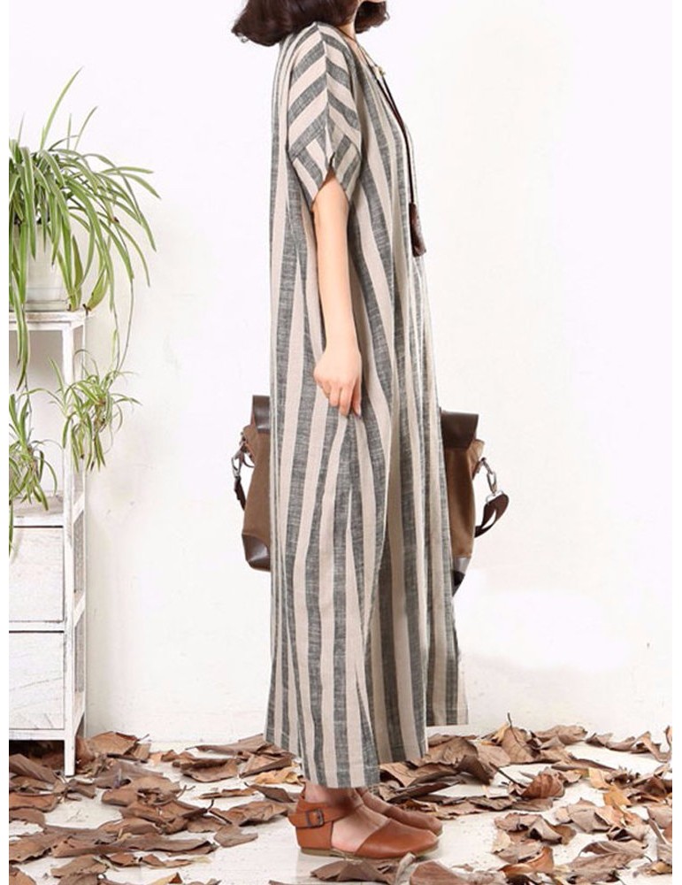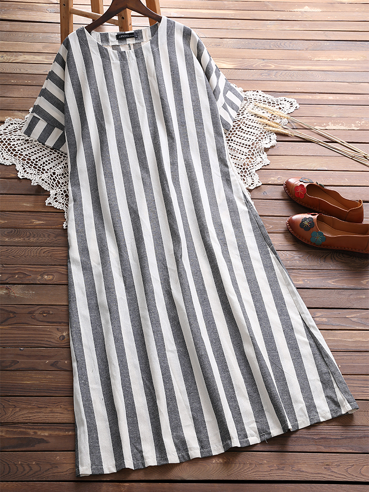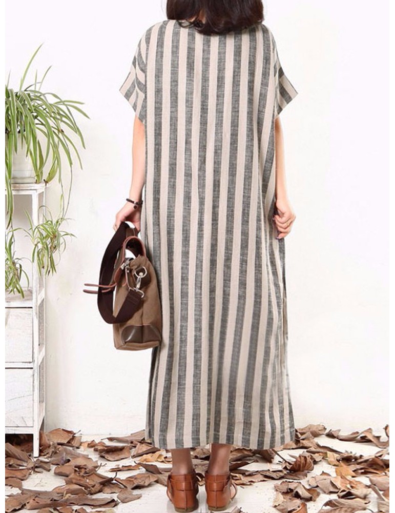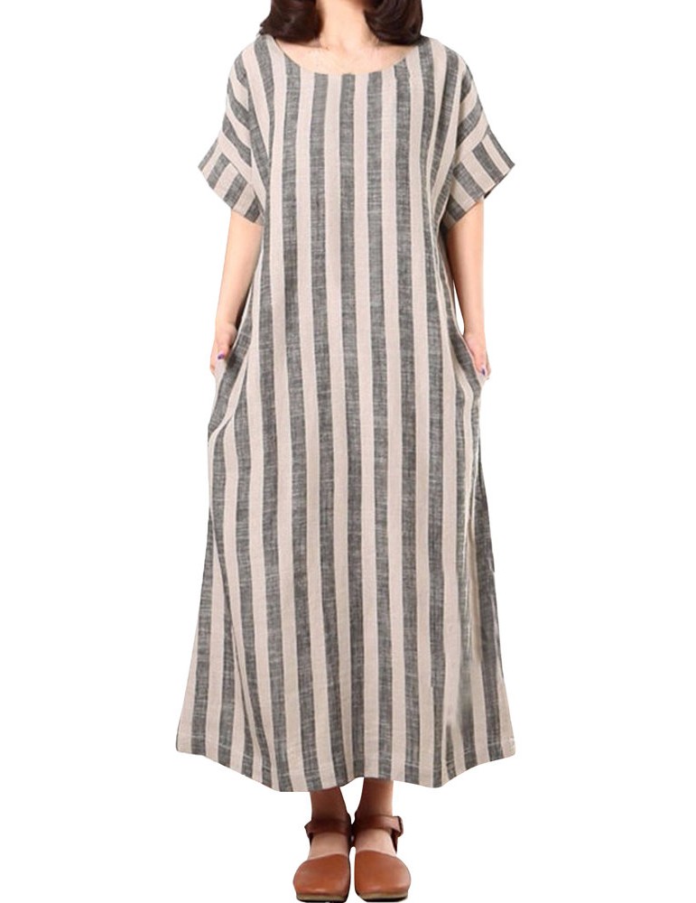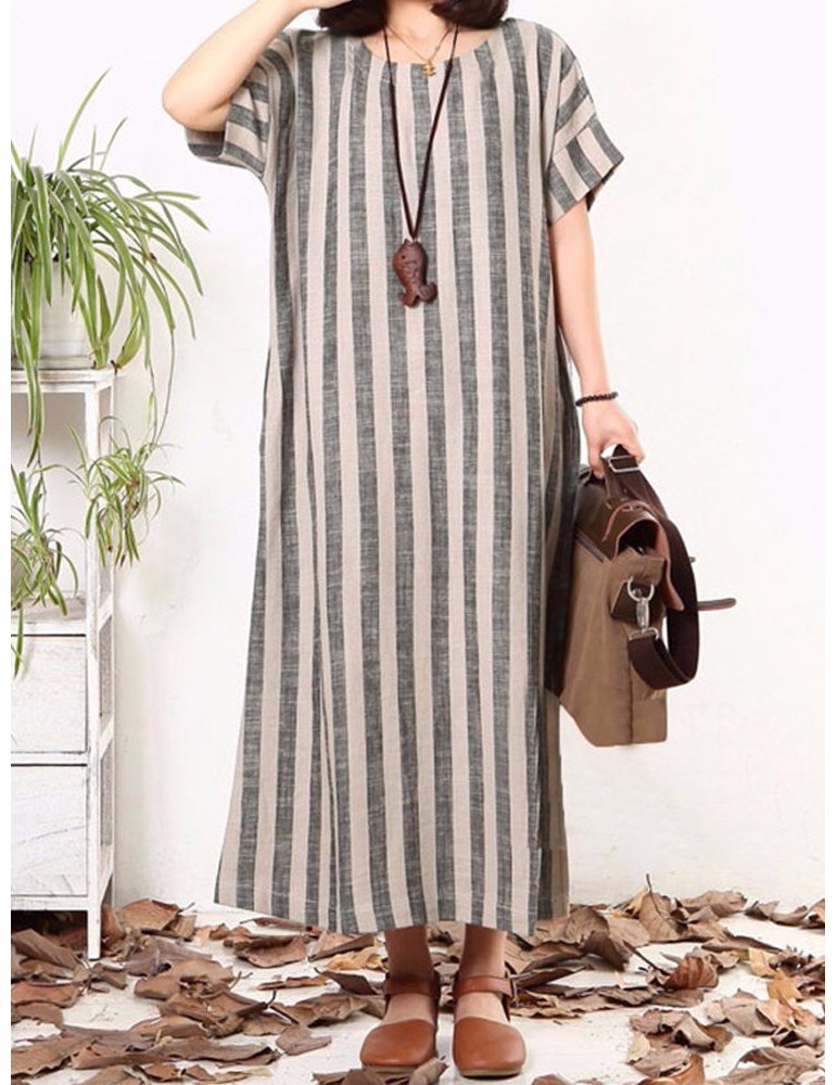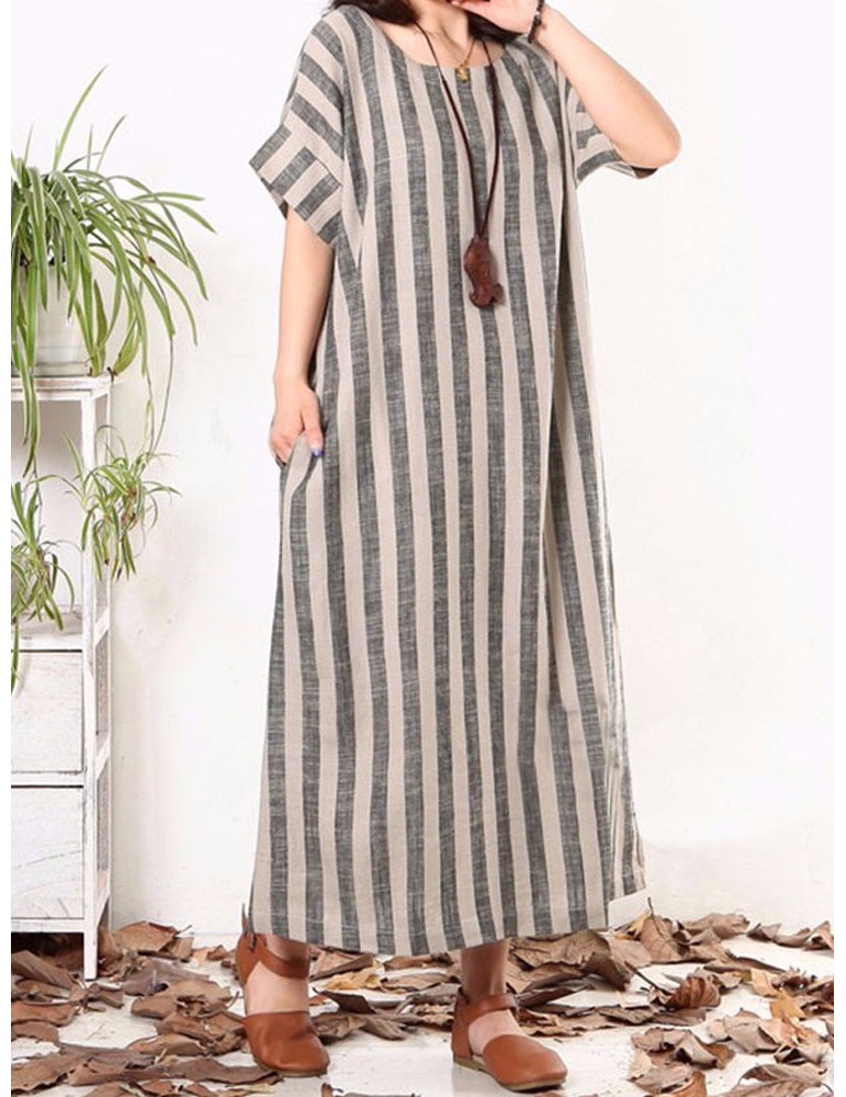 Casual Short Sleeves Striped Baggy Dresses For Women
