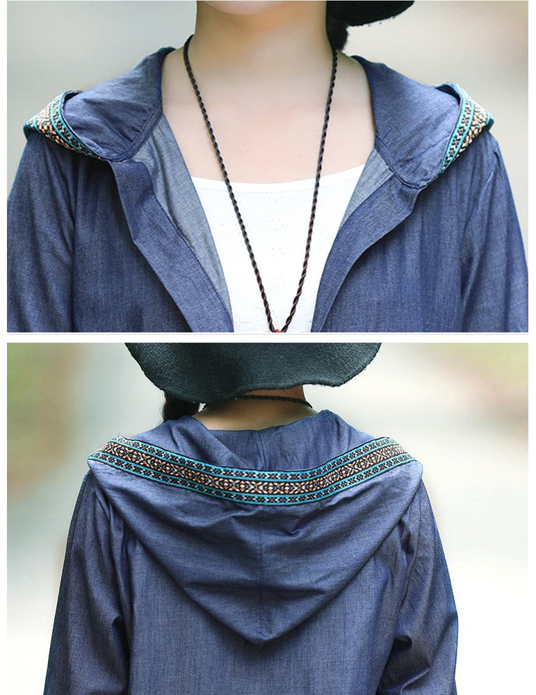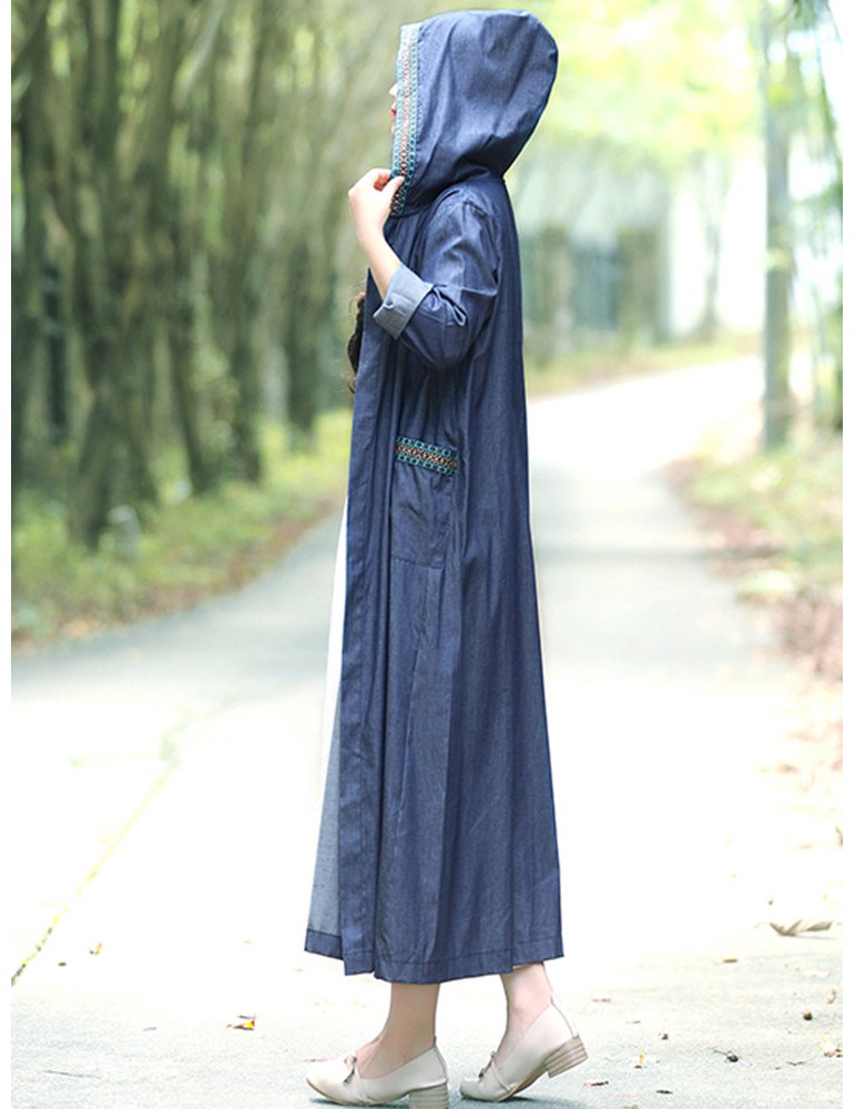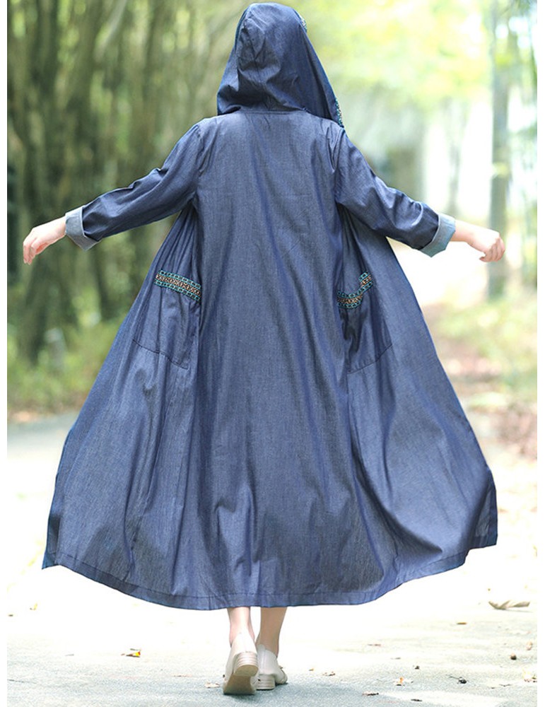 Casual Long Sleeve Hooded Denim Coat for Women