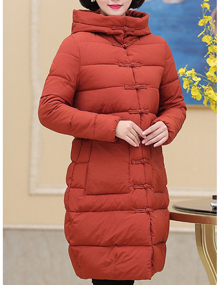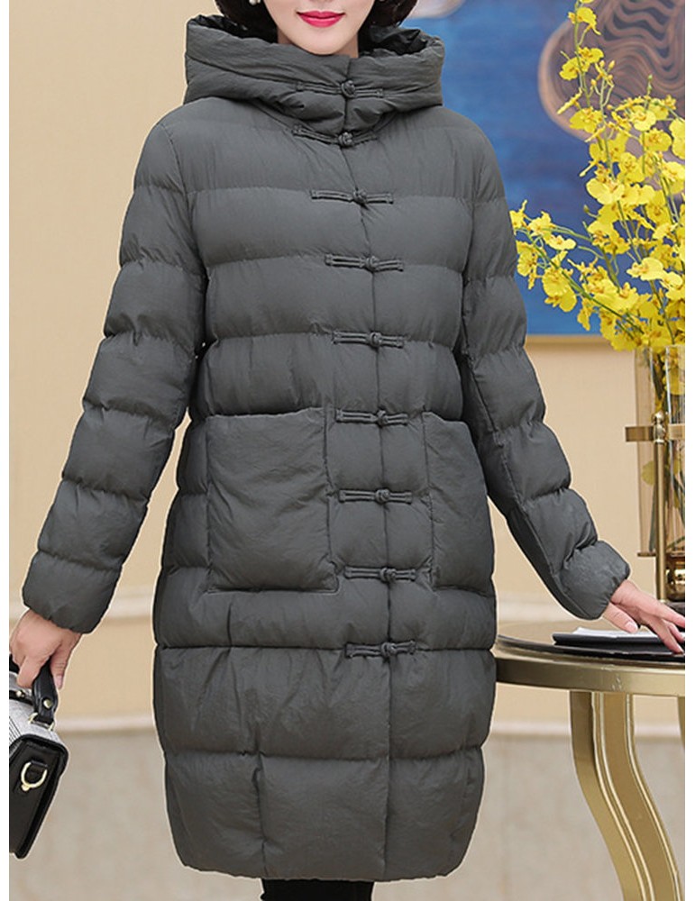 Casual Hooded Long Sleeved Down Cotton Coat