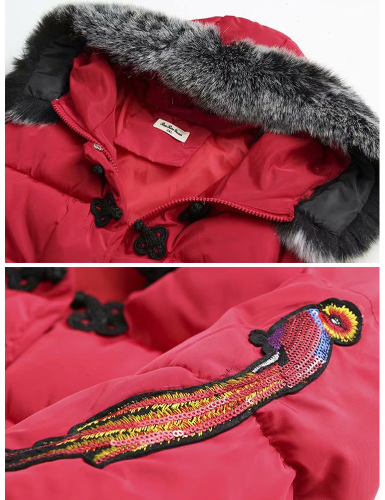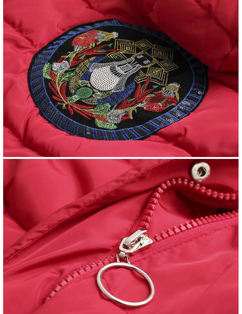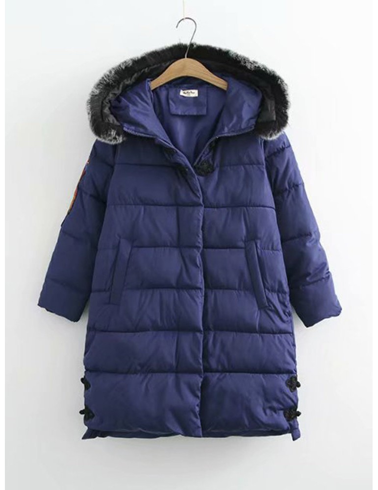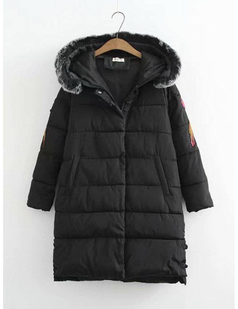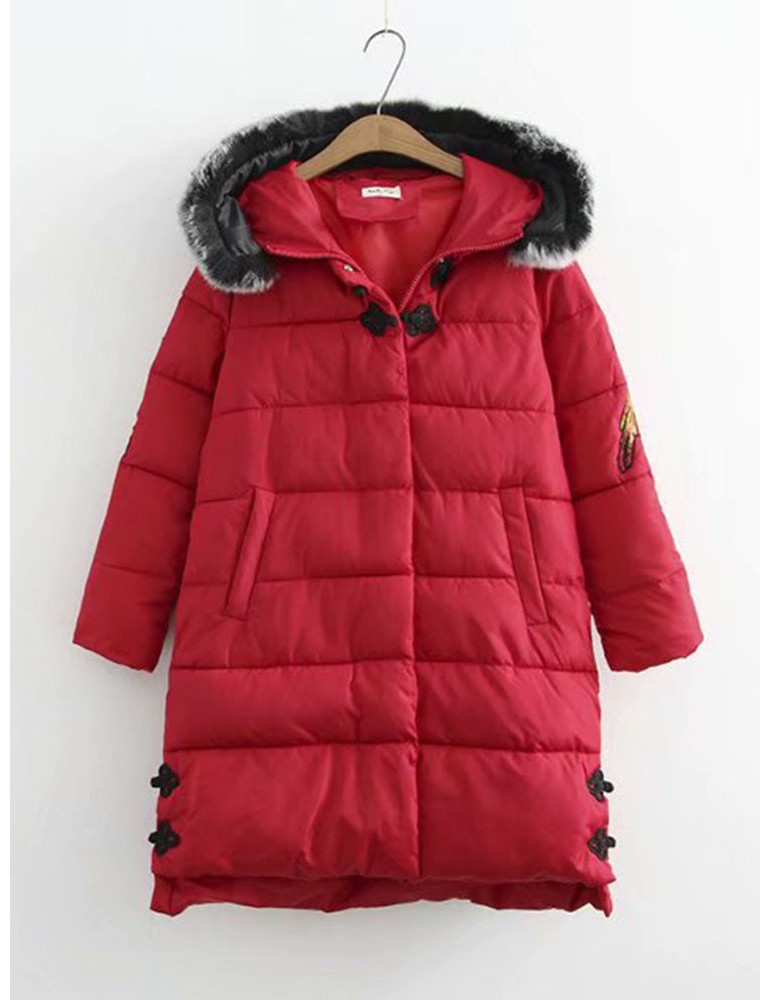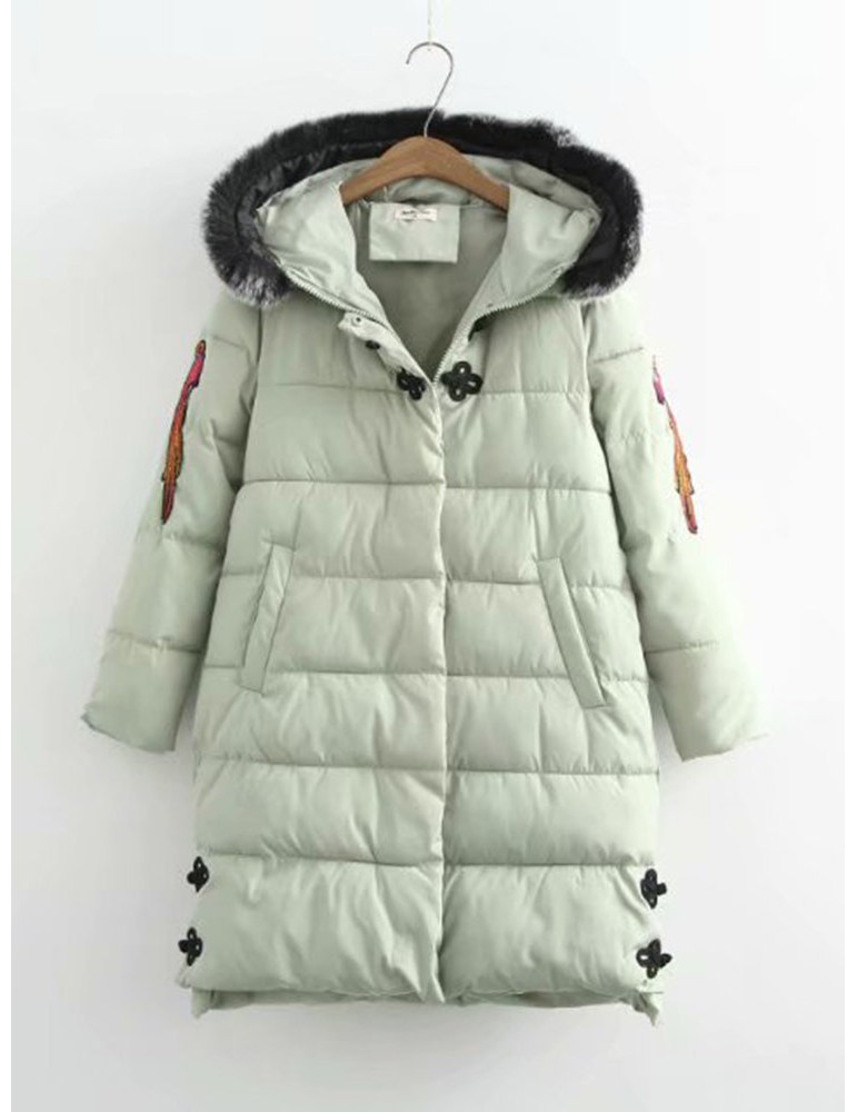 Casual Embroidered Hooded Cotton Coat