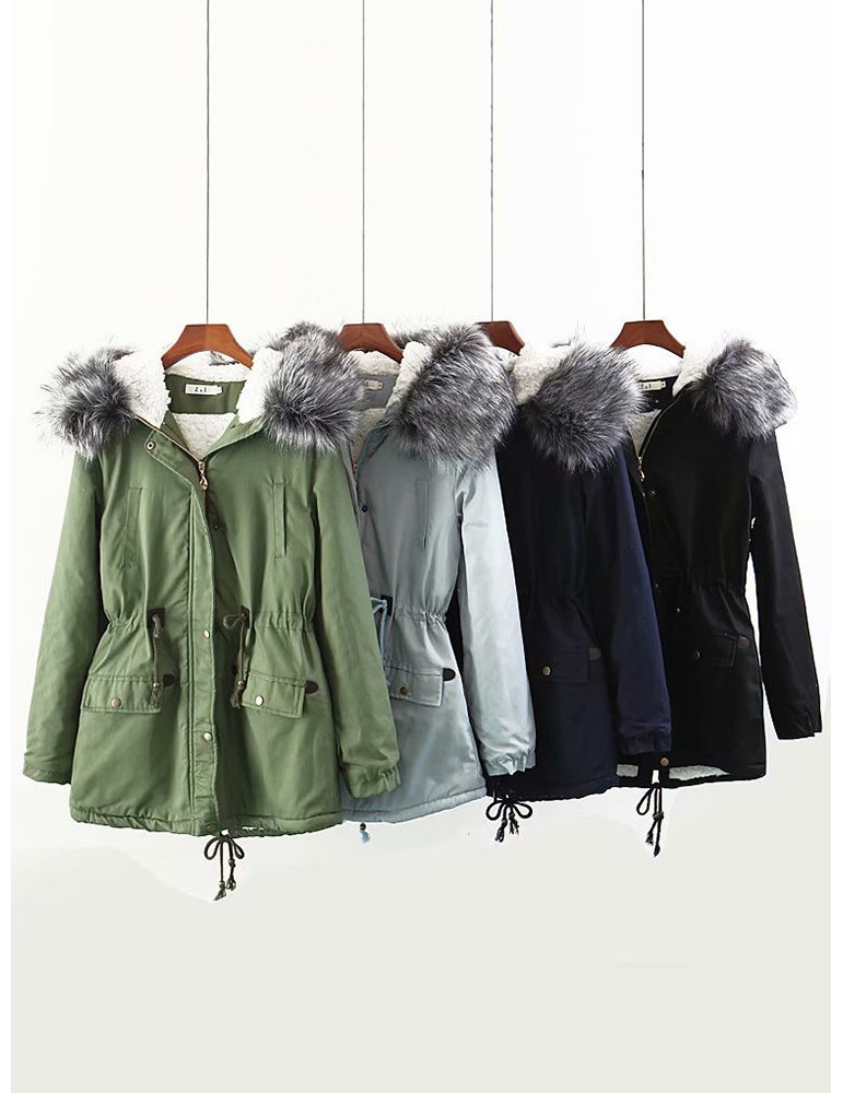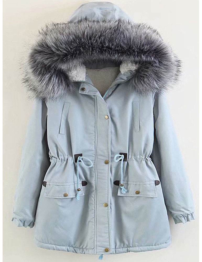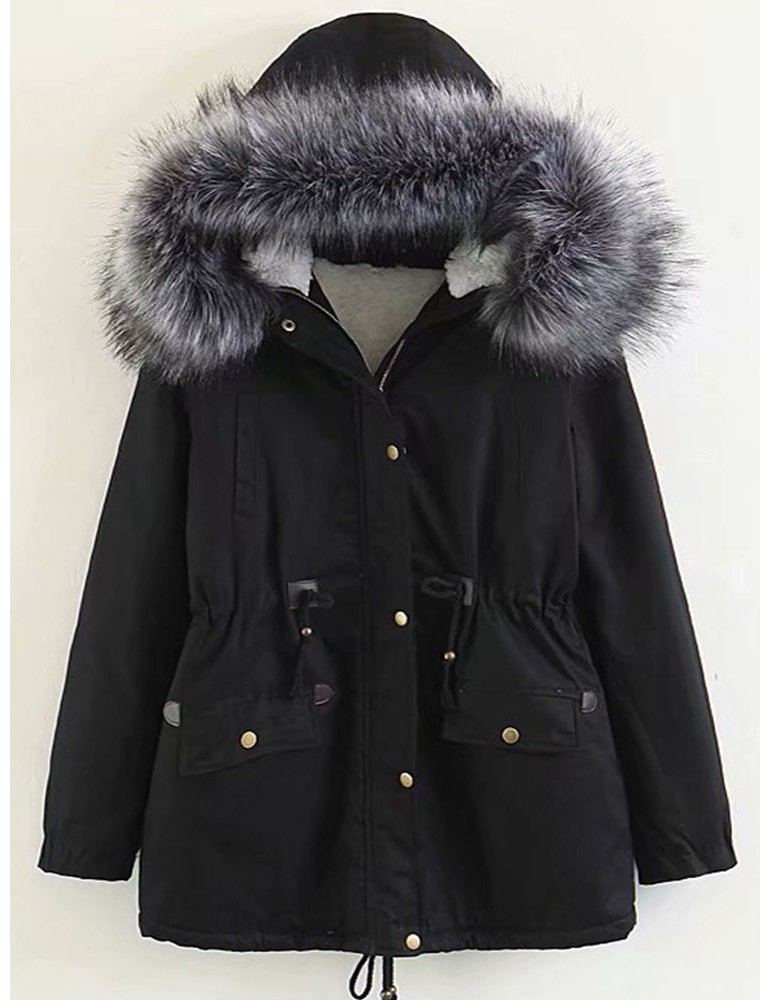 Casual Large Fur Collar Waist Slim Hooded Coat