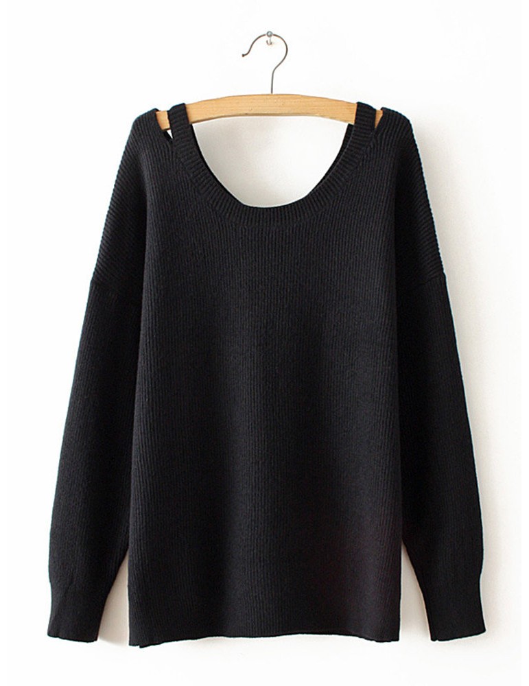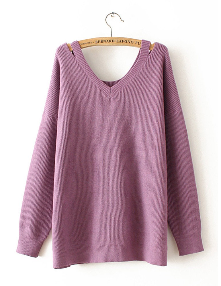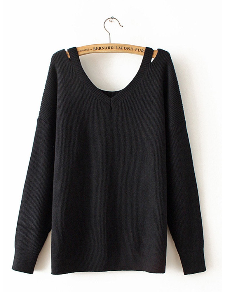 Solid Color V-Neck Cold Shoulder Long Sleeve Sweater