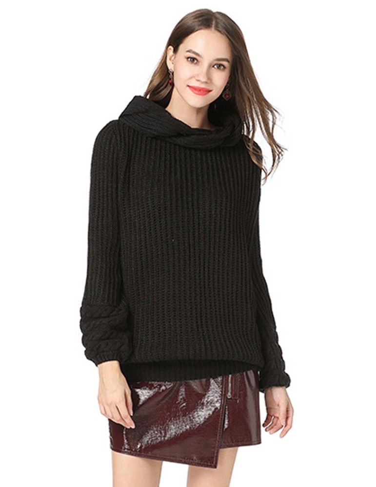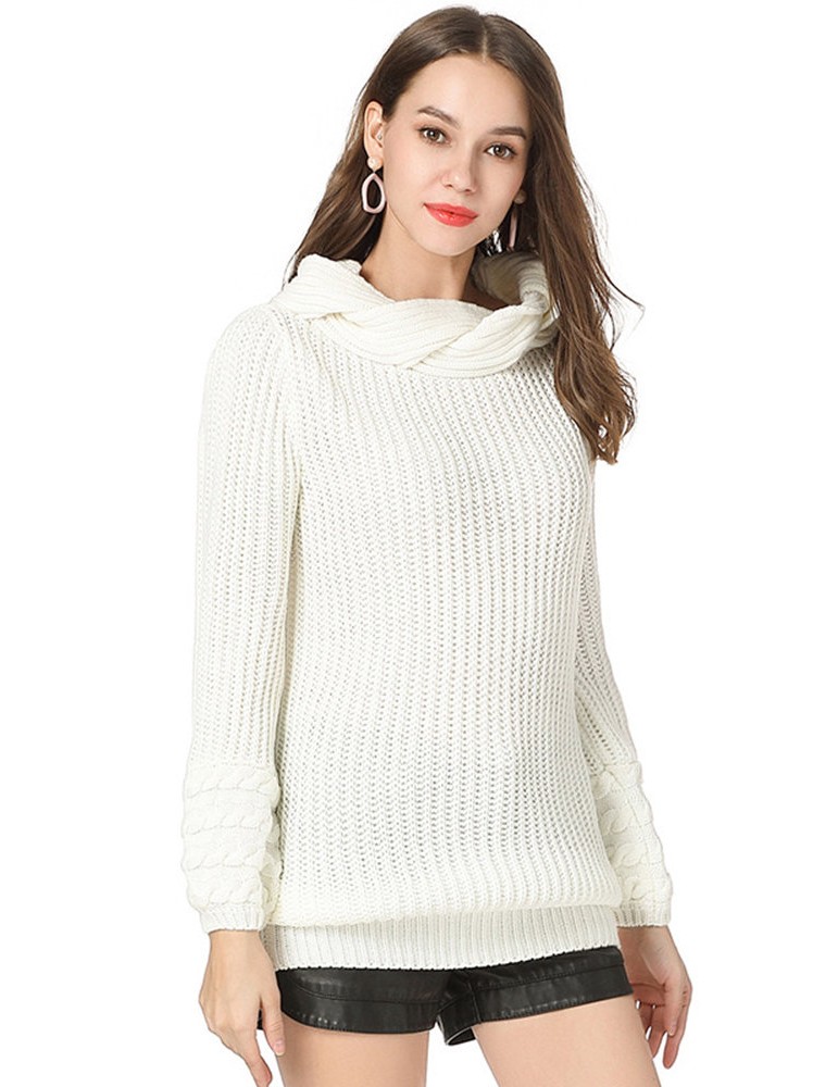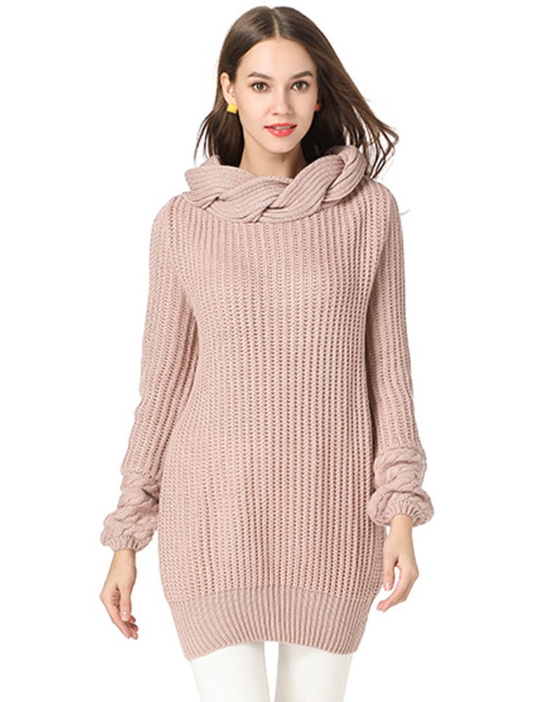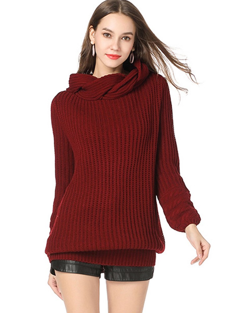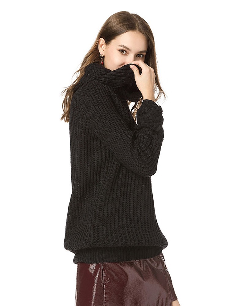 Casual Solid Color High Neck Sweater for Women