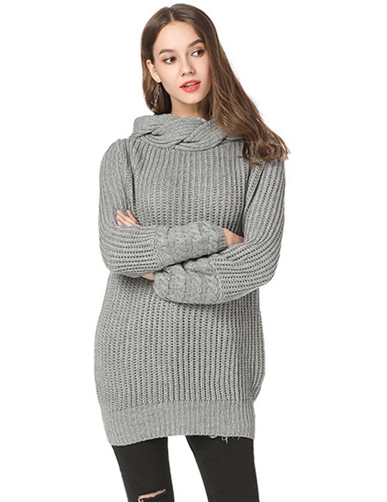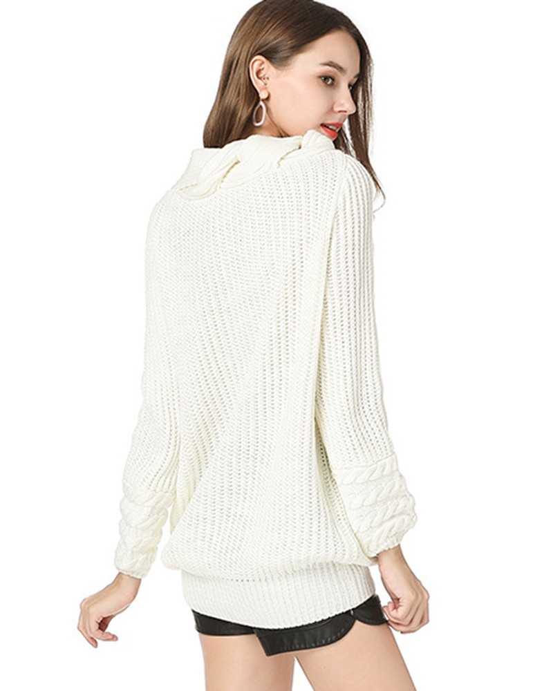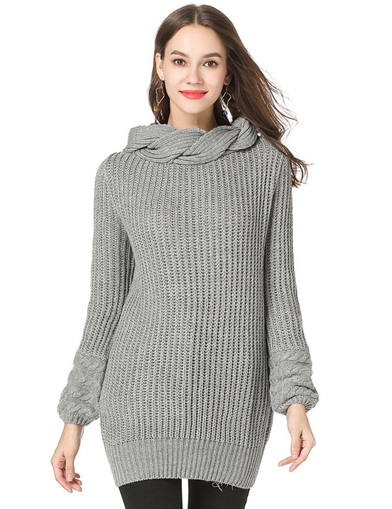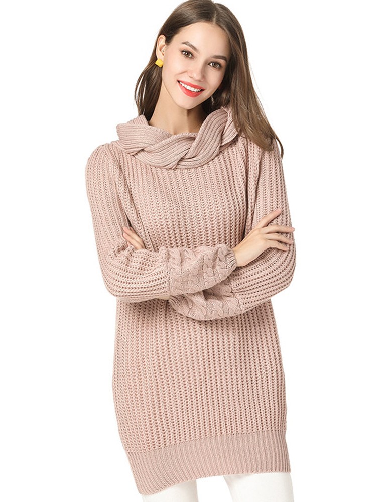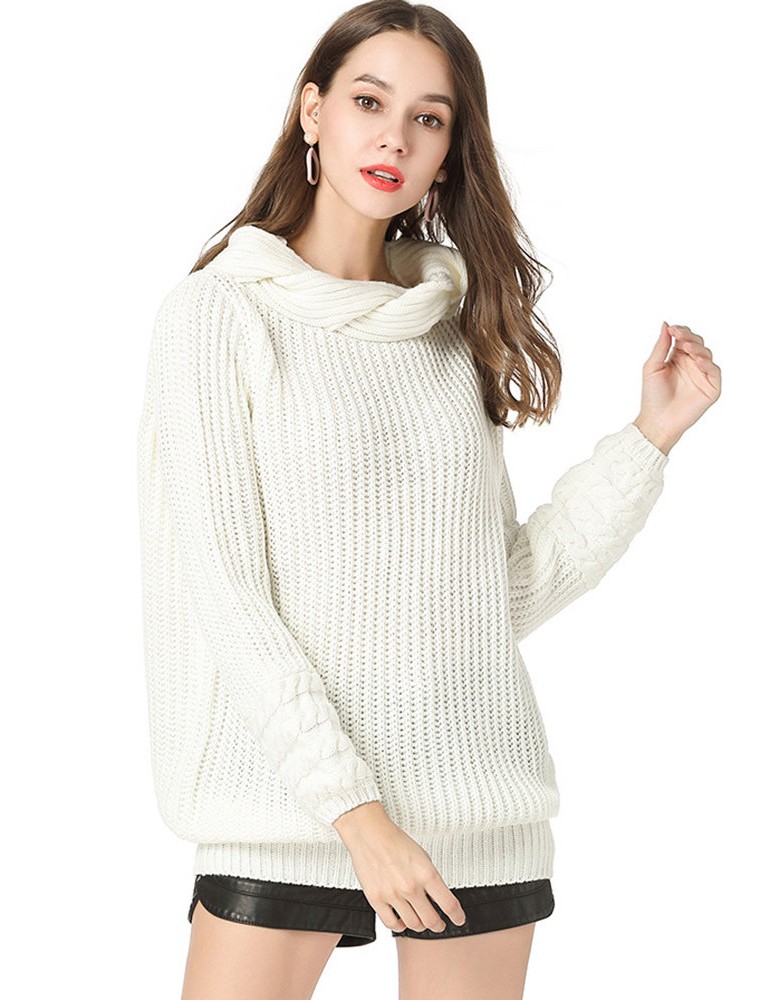 Casual Solid Color High Neck Sweater for Women