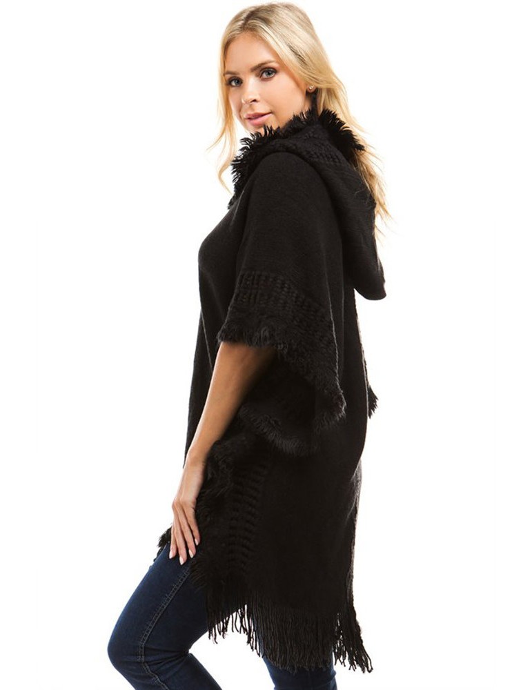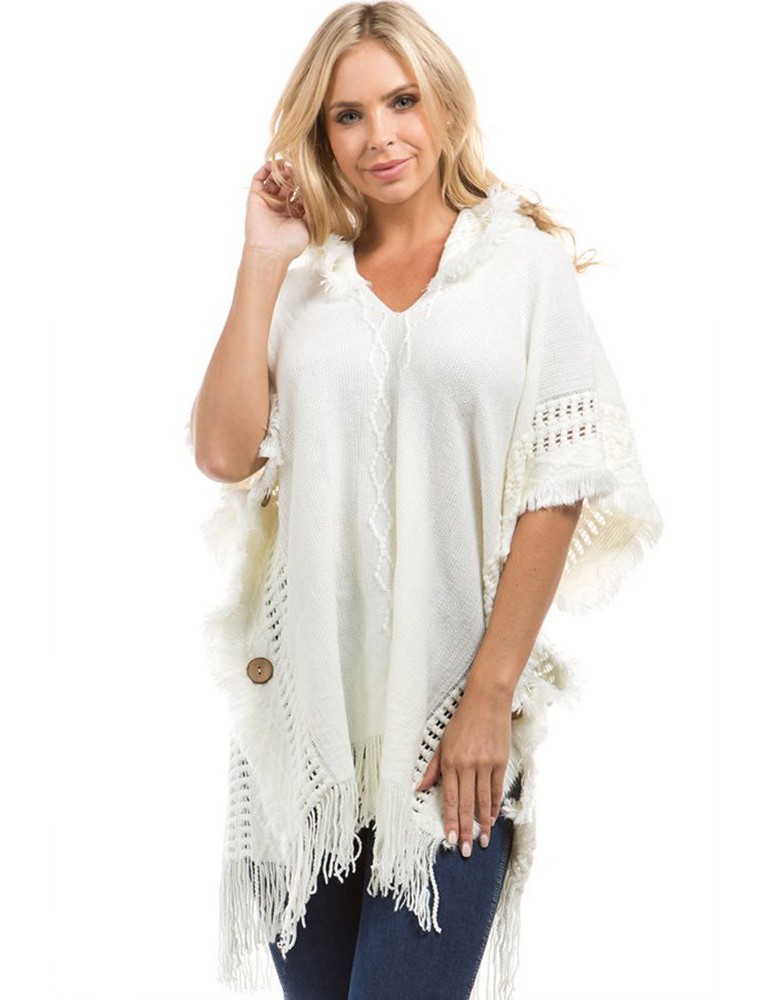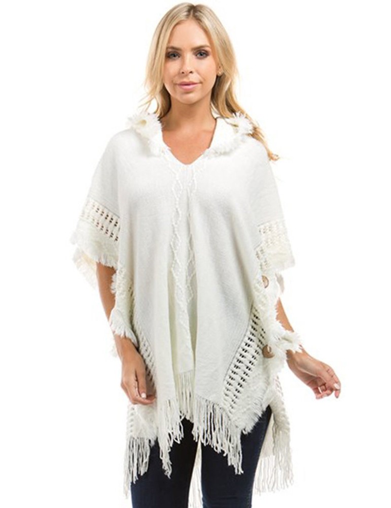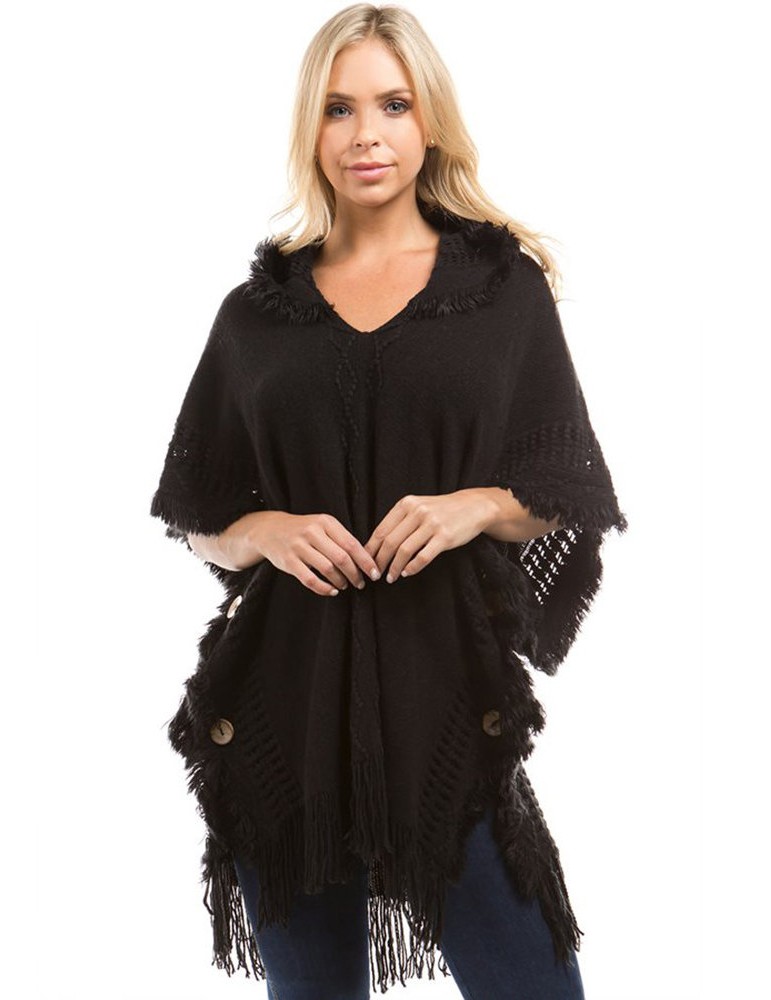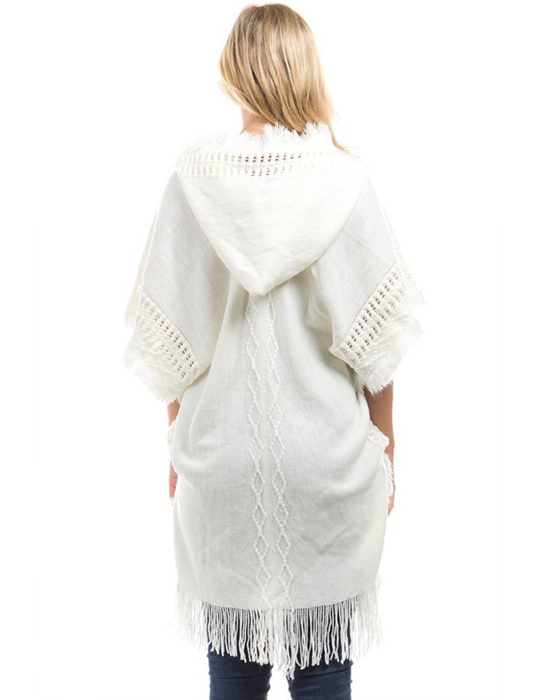 Solid Color Button Tassel Hooded Irregular Cardigan
