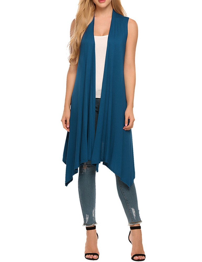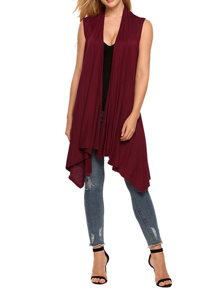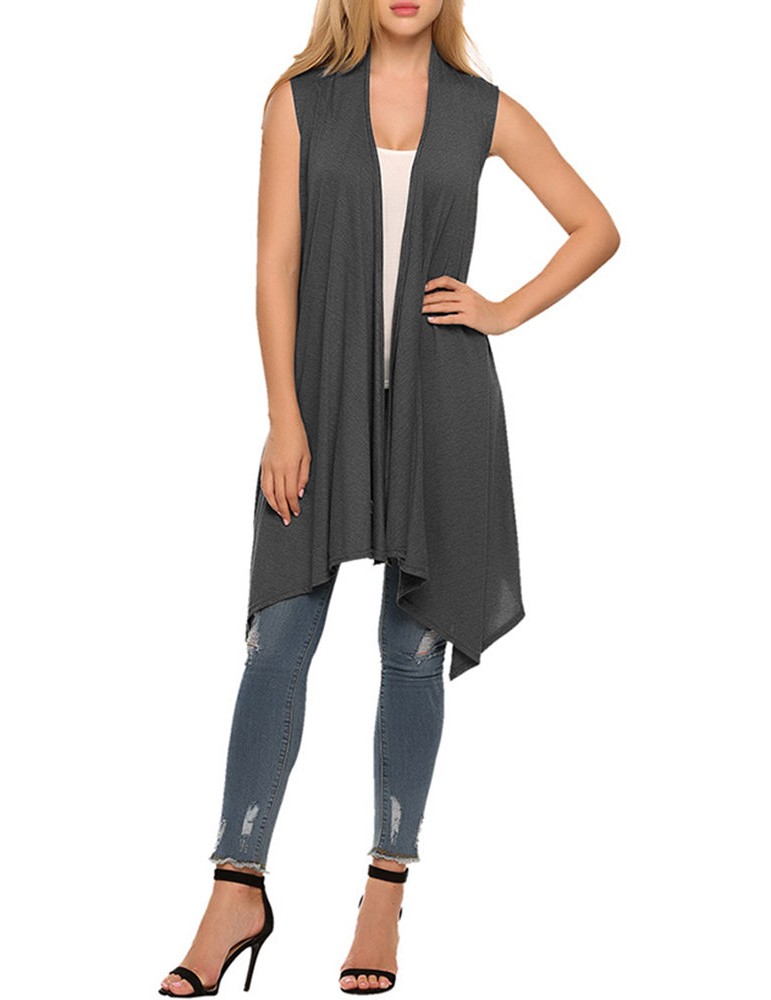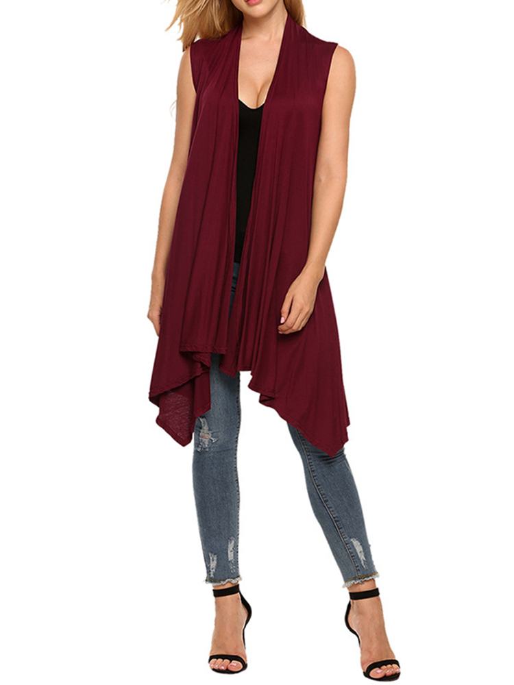 Casual Solid Sleeveless Irregular Cardigans for Women