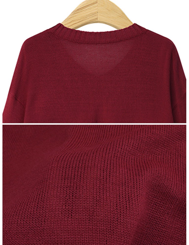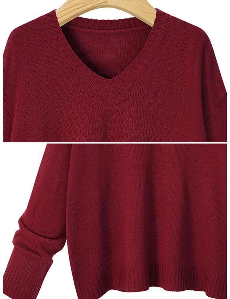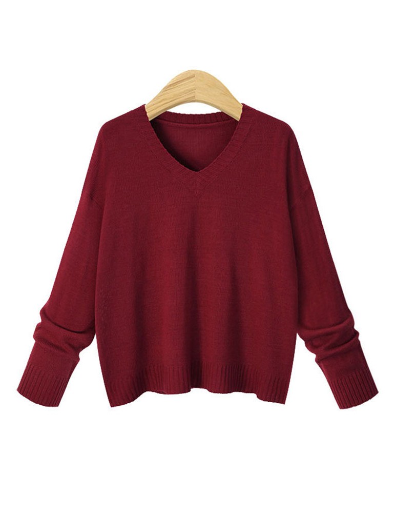 Solid Color V-Neck Long Sleeve Knit Sweater
