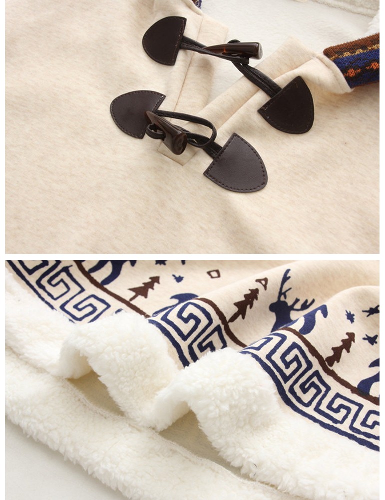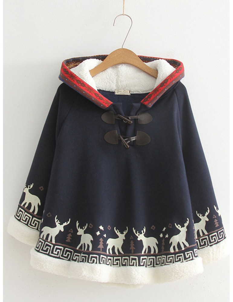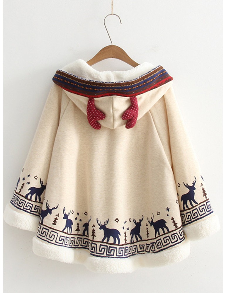 Cartoon Print Deer Ear Irregular Cloak Hoodie