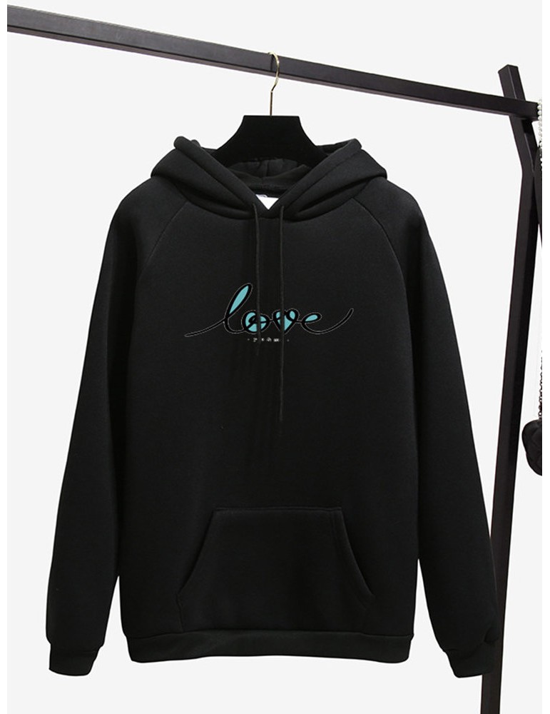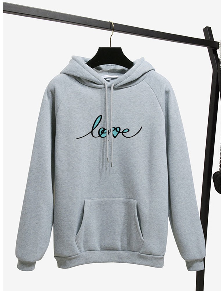 Casual Loose Print Drawstring Pocket Long Sleeve Hoodie