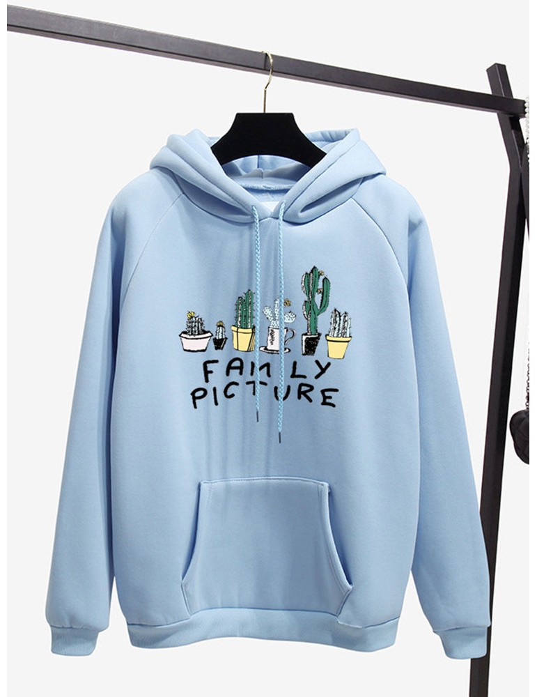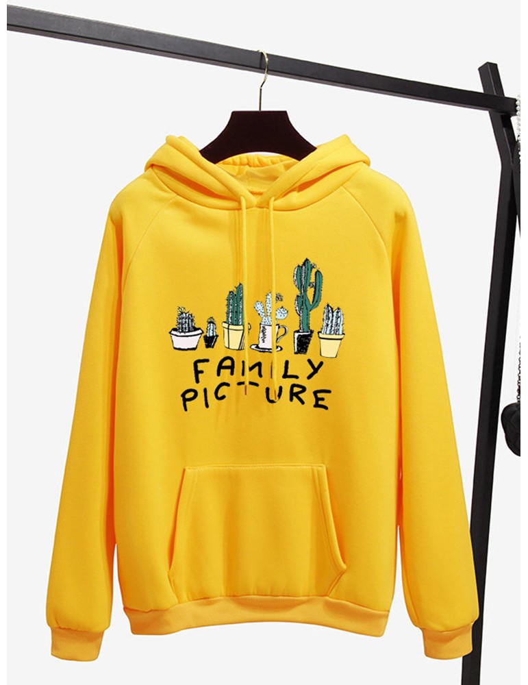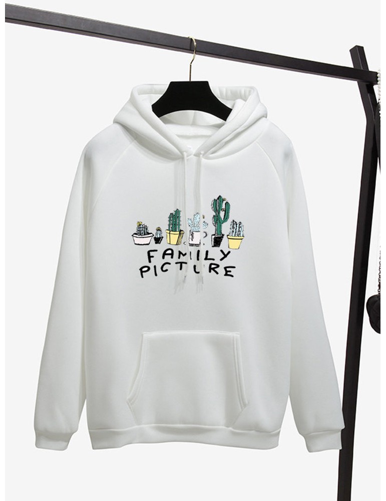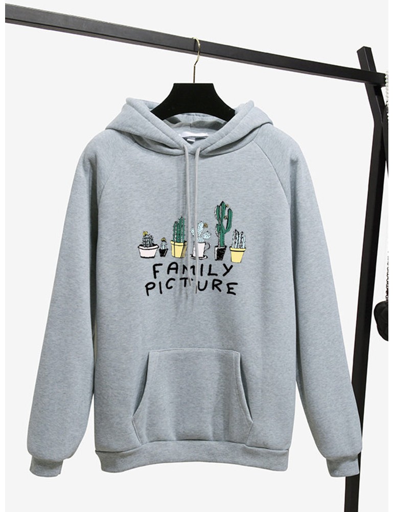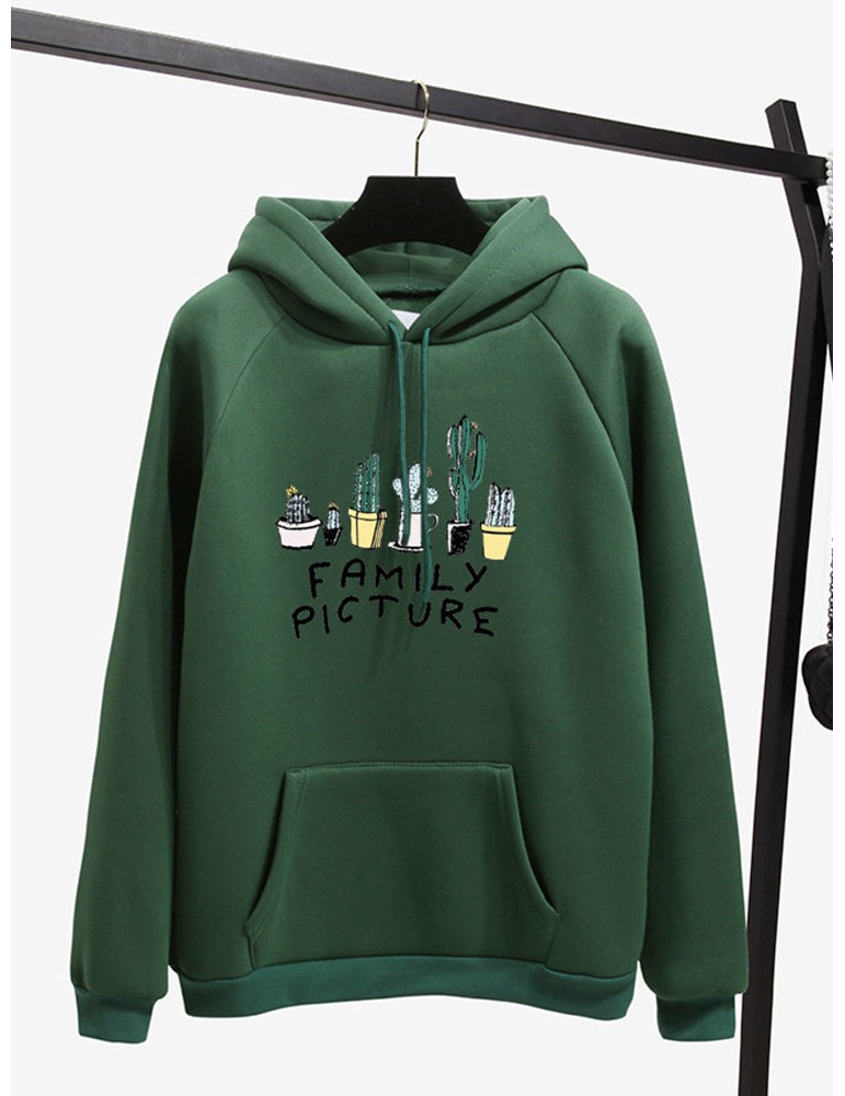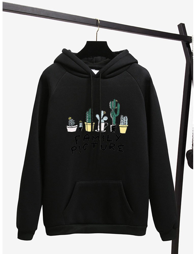 Casual Loose Cactus Print Drawstring Pocket Hoodie