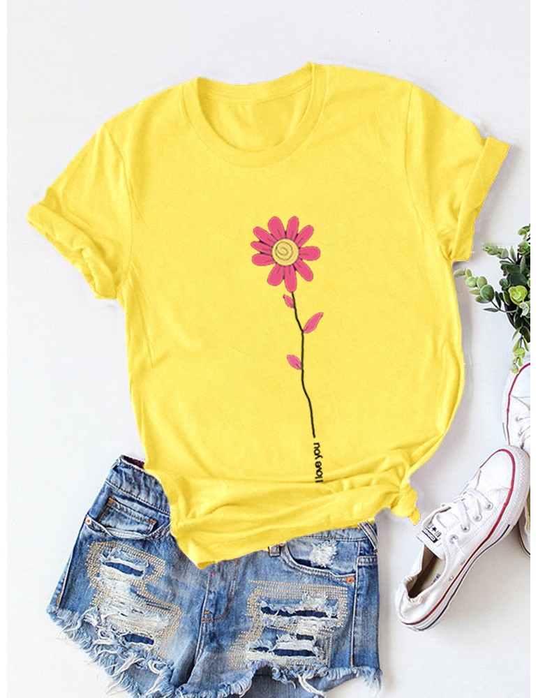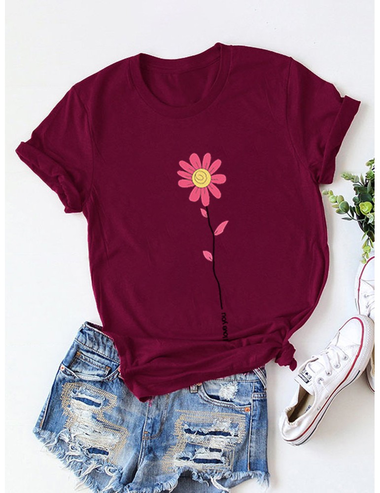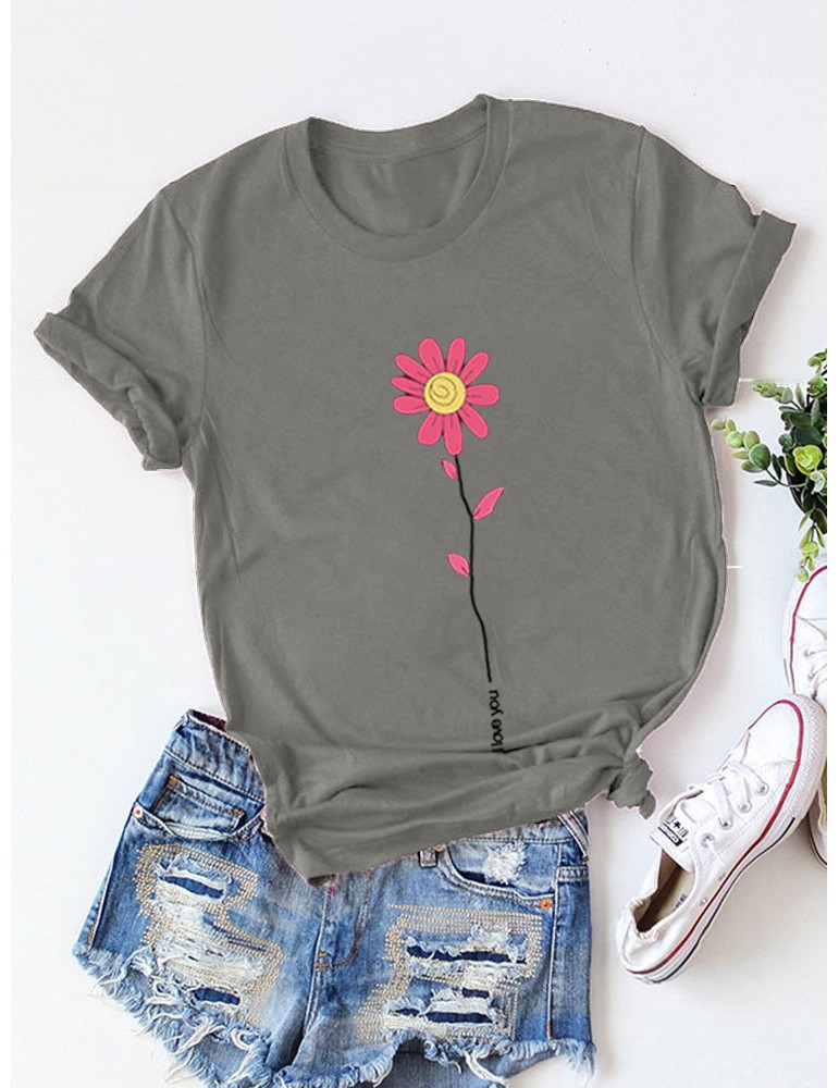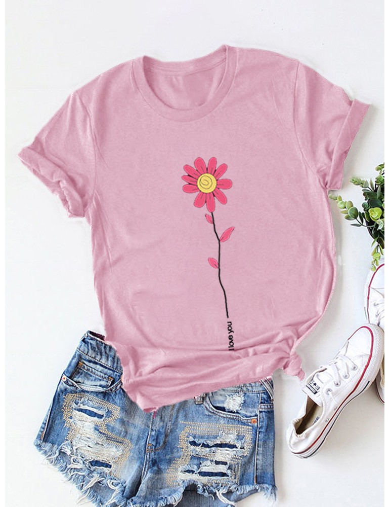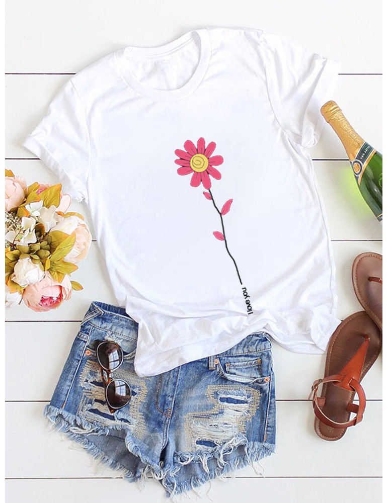 Casual Flower Print Short Sleeve T-Shirt for Women