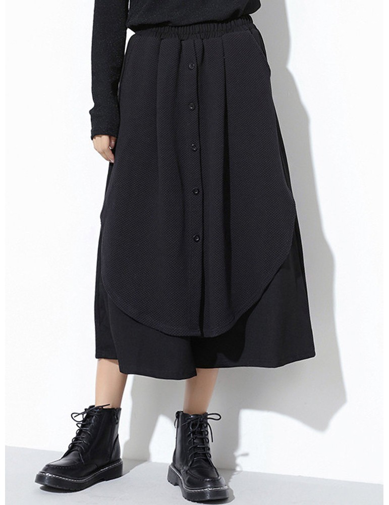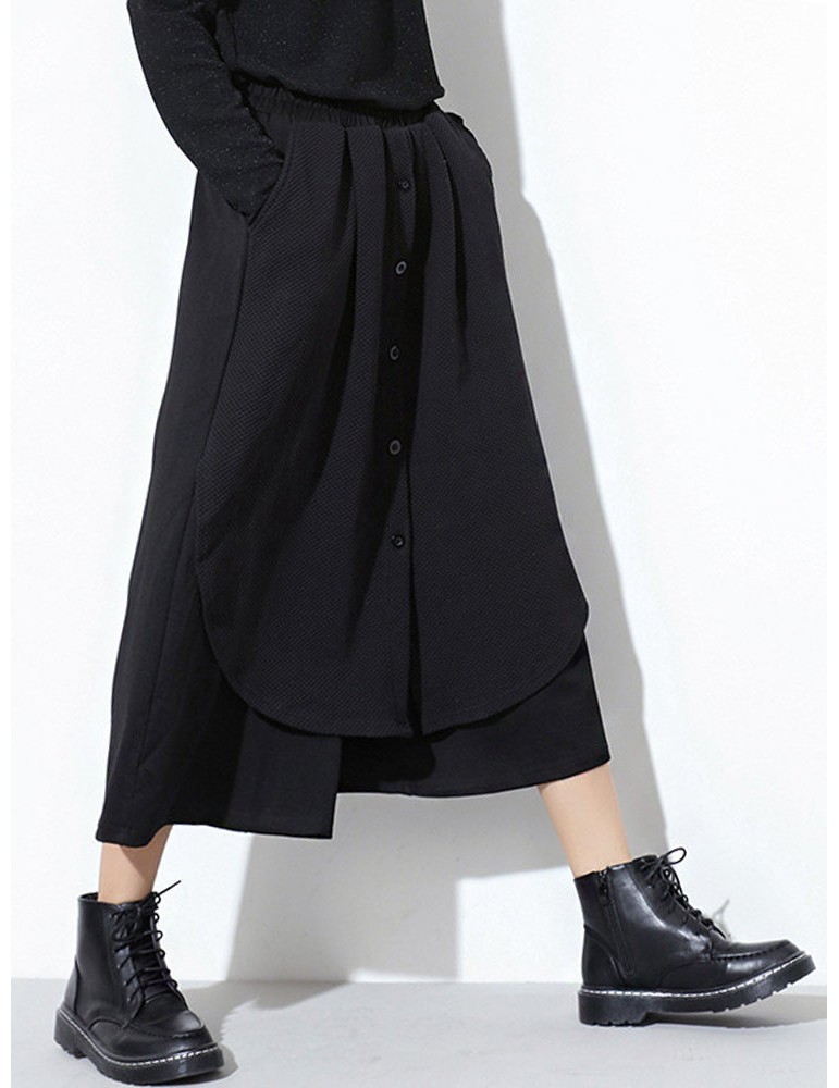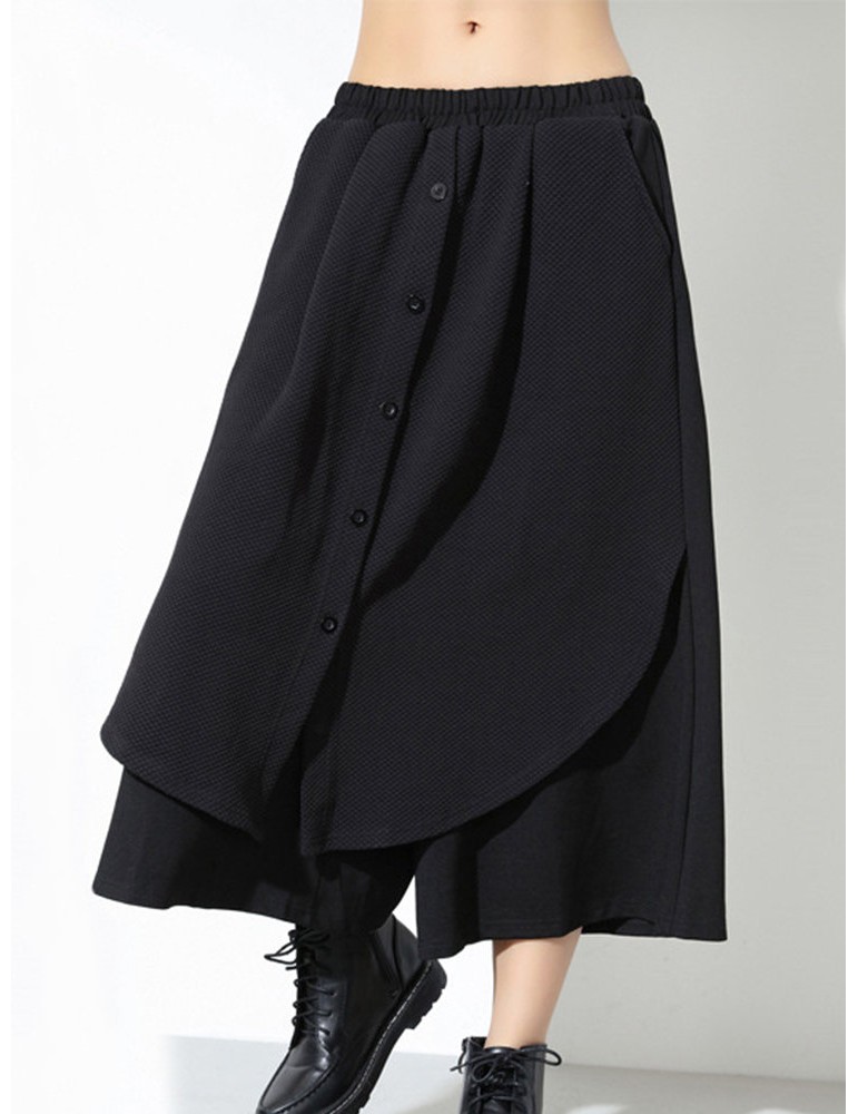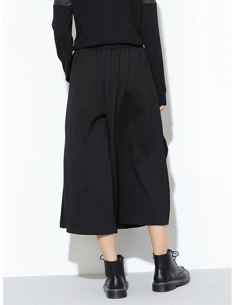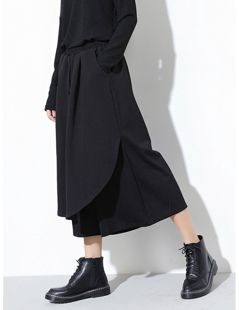 Fashion Black Stitching Elastic Waist Harem Pants For Women