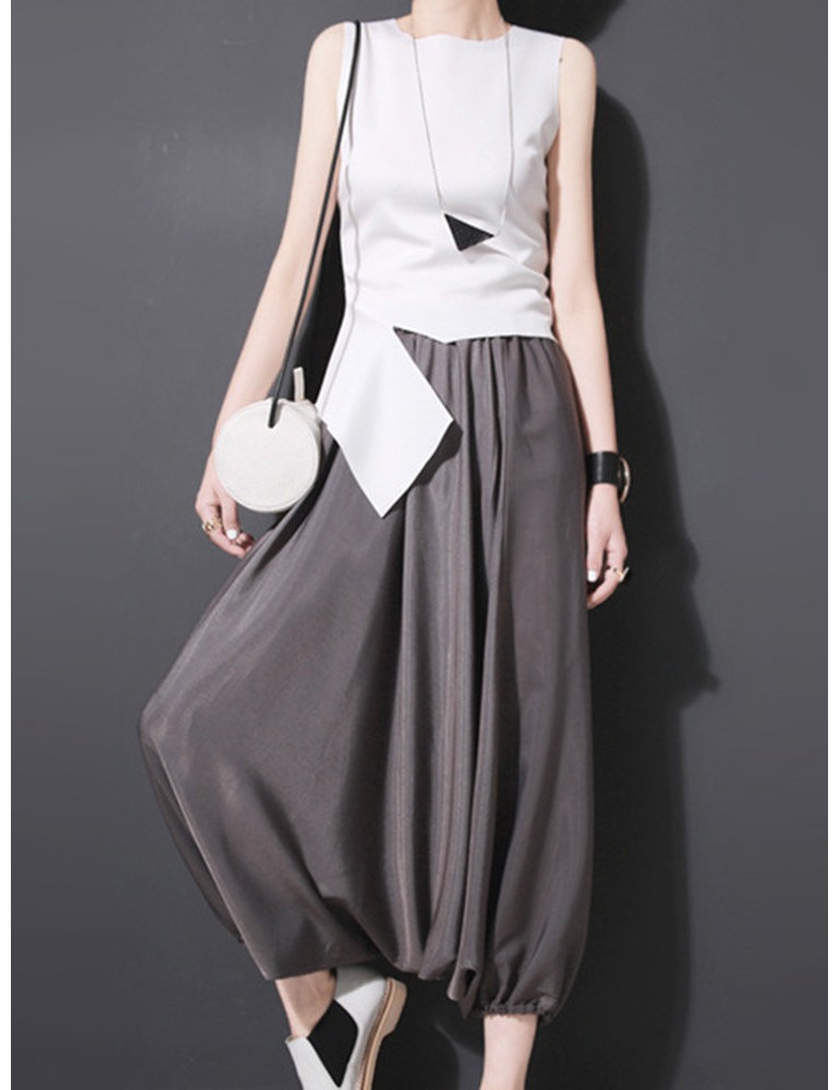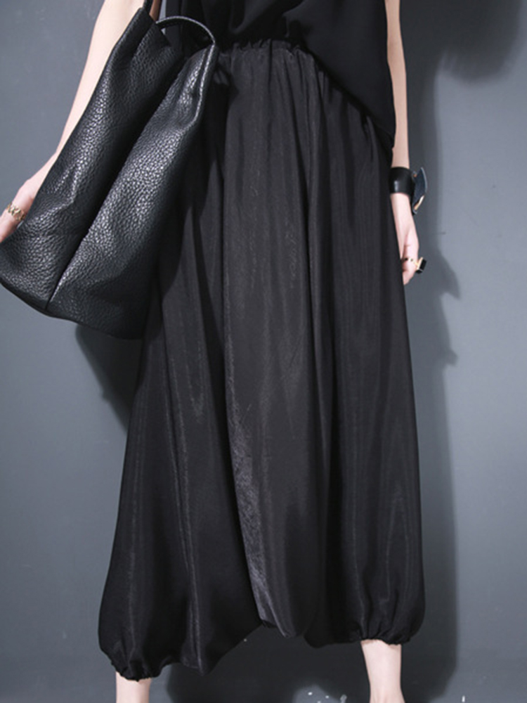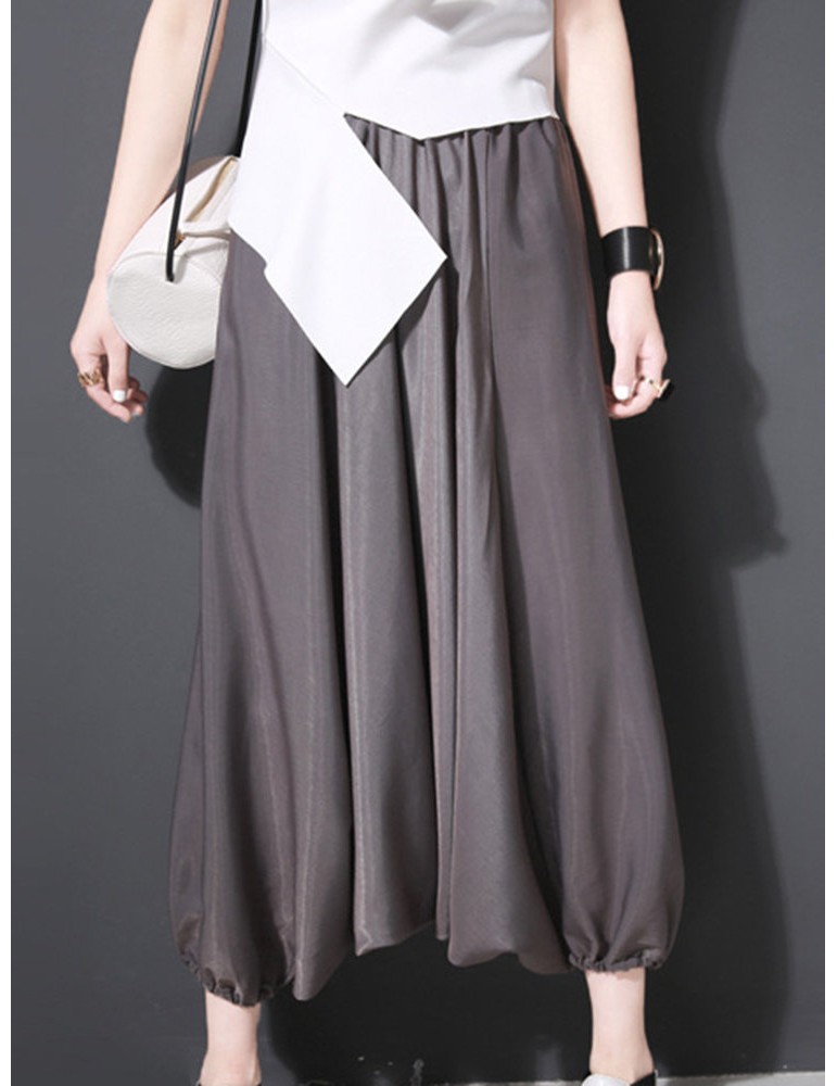Fashion Pure Color Elastic Waist Harem Pants For Women