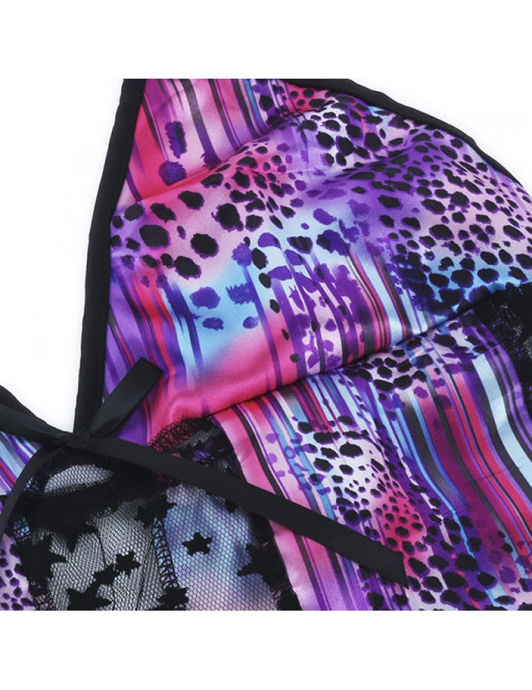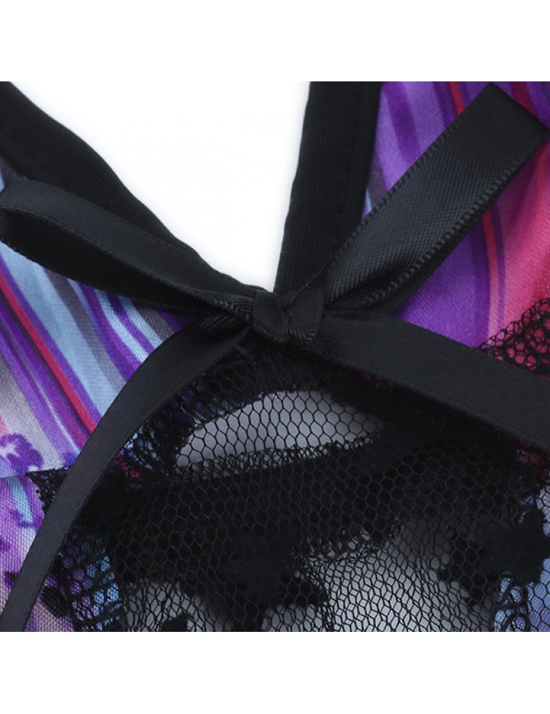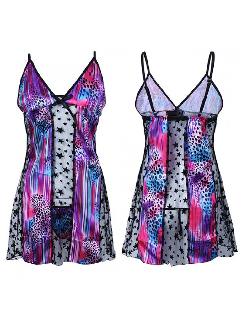 Women Sexy V Neck Transparent Babydoll Star Printing Hollow Temptation Nightdress