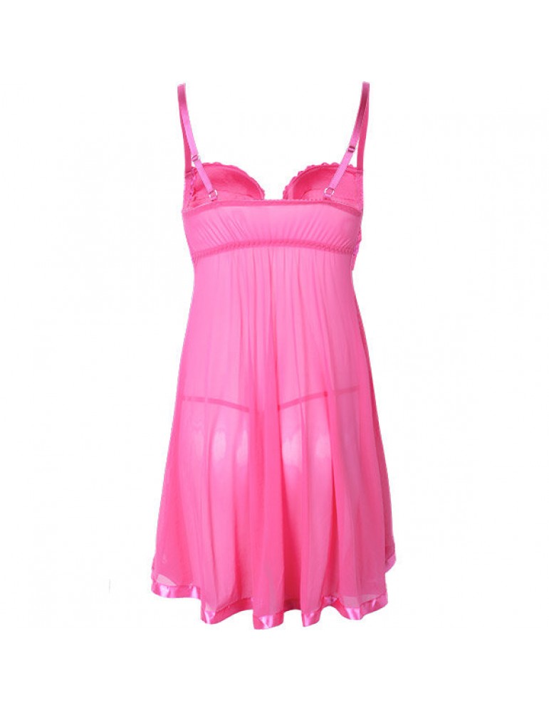 Women Sexy V Neck Transparent Mesh Babydoll Spaghetti Strap Temptation Nightdress