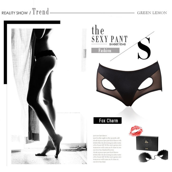 Sexy Mesh Fox Shape Hollow Out Mid Waist Panties For Women