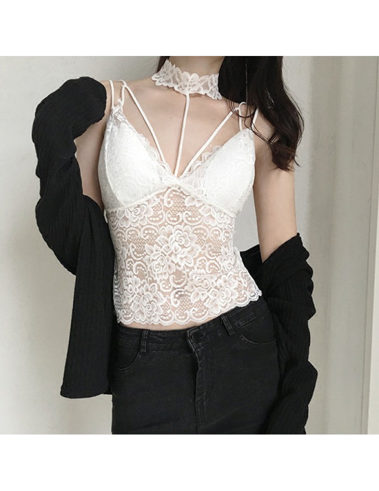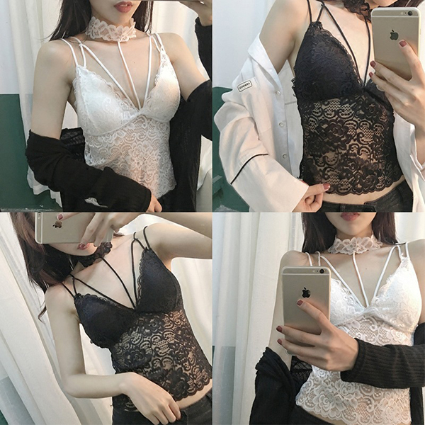 Halter Plunge Bandage Lace Crocheted Wireless Cami T-shirt Comfort Bras