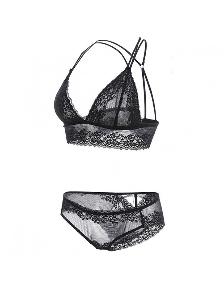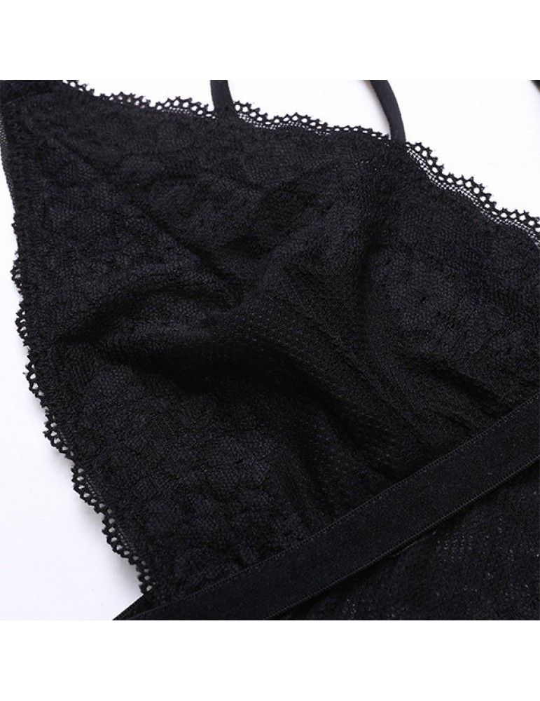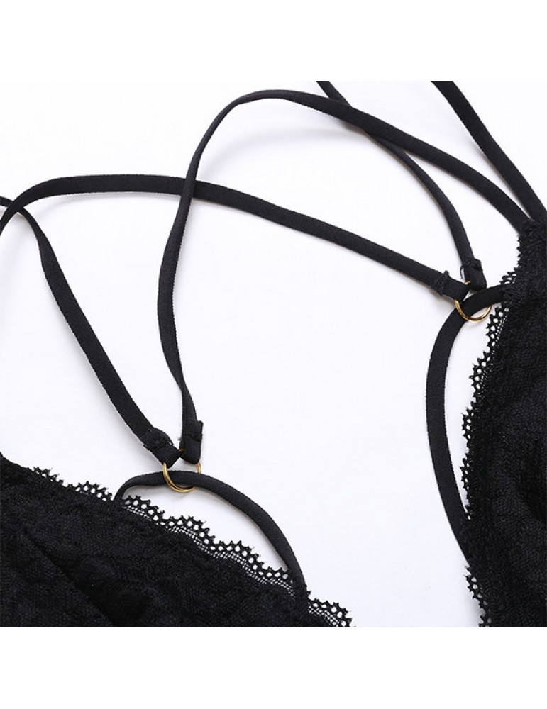 Lace Transparent Criss-cross Back Thin Deep V Bralettes For Women