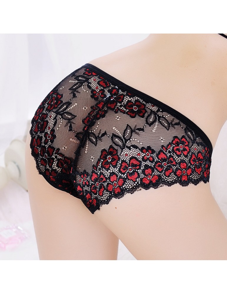 Embroidery Transparent Bowknot Bottom Sexy Lingerie Panty