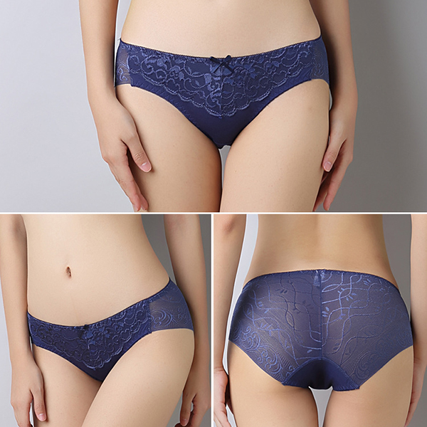 Embroidered Lace Seamless Breathable Mid Waist Panties For Women