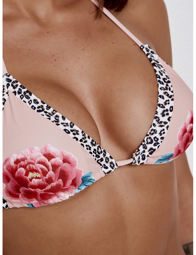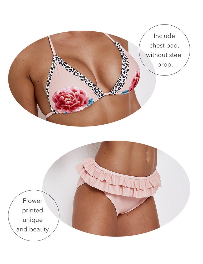 Sexy Bikinis Halter Printed Flounce Triangle Swimsuits For Women
