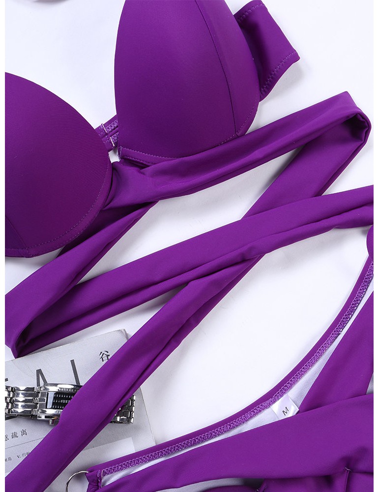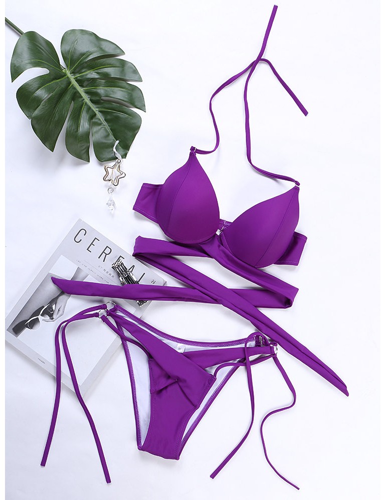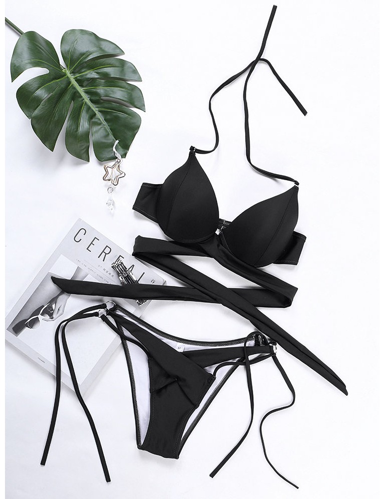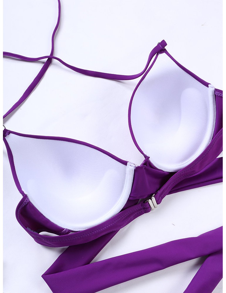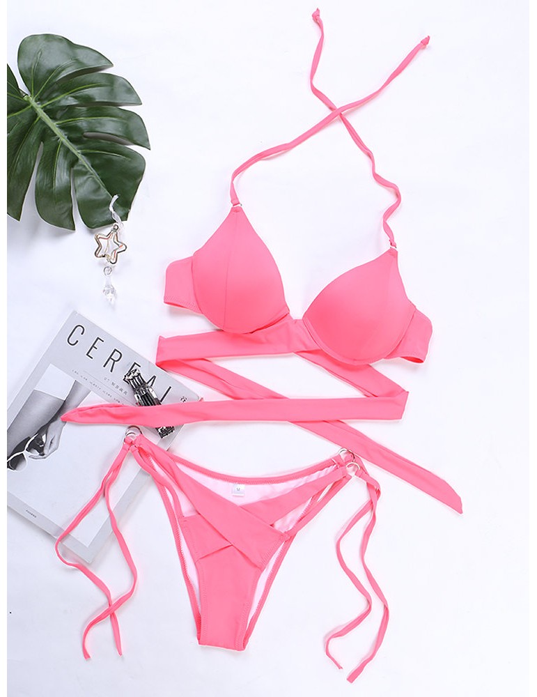 Halter String Push Up Solid Color Criss Cross Sexy Bikinis Swimwear For Women