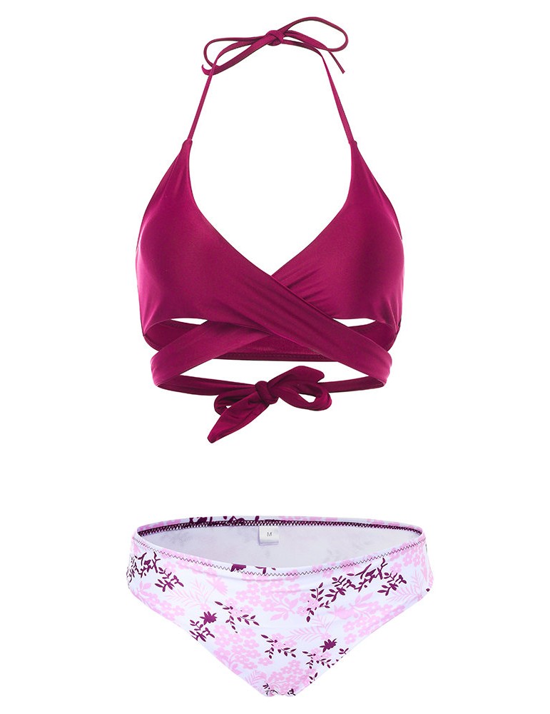 Sexy Strings Halter Criss-cross Bust 3D Printed Bikini Set Swimwear