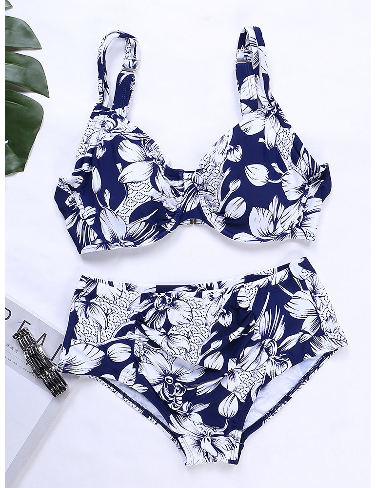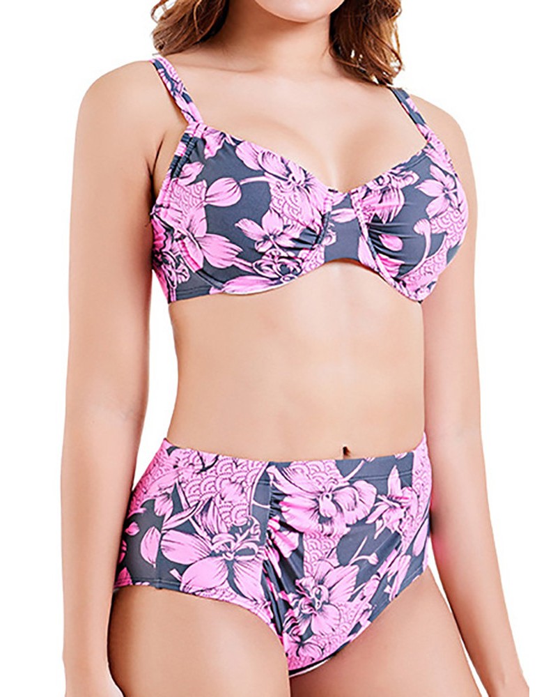 Floral Printing Push Up High Waist Sexy Backless Bikinis Swimwear For Women