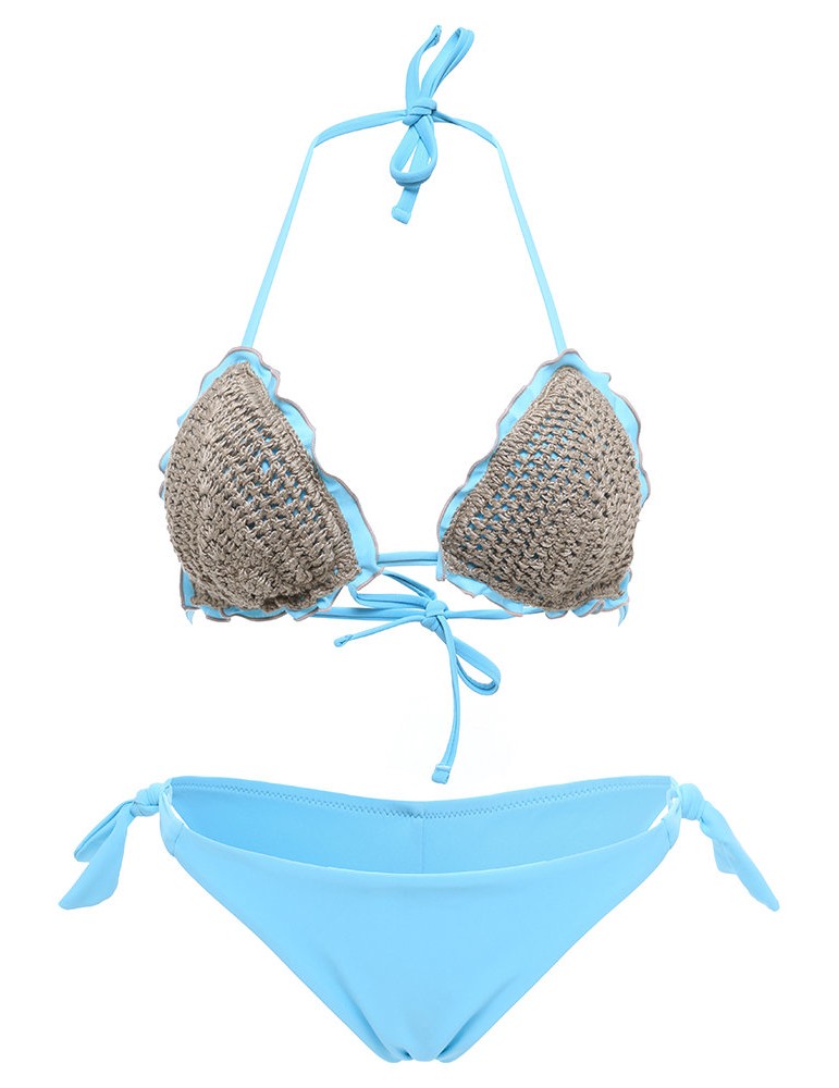 Crochet Halter Backelss Sexy Triangle Bikini Swimsuit Swimwear For Women