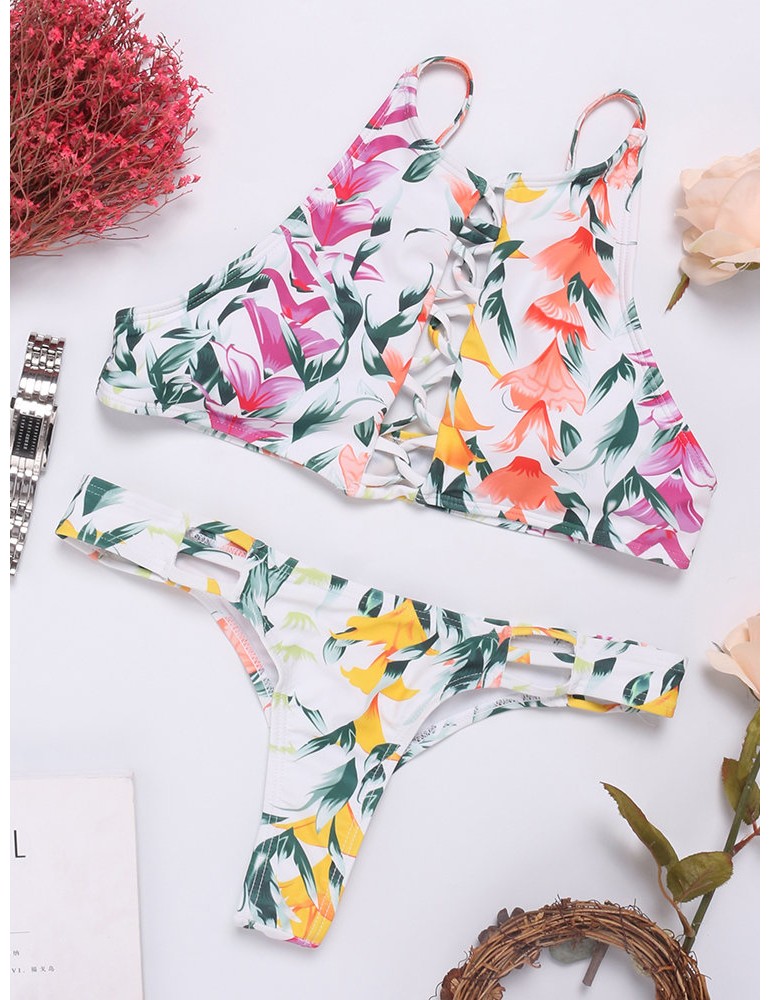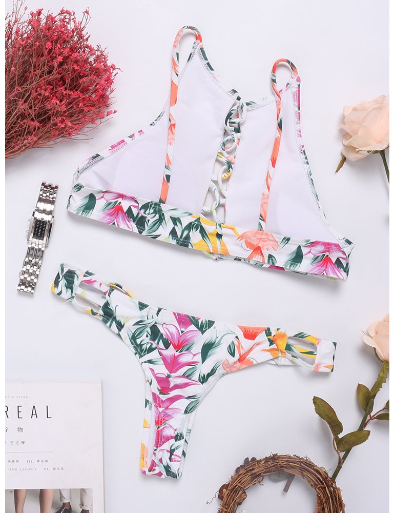 Printed Sexy Hollow Out Criss Cross Front Sexy Tankinis Set