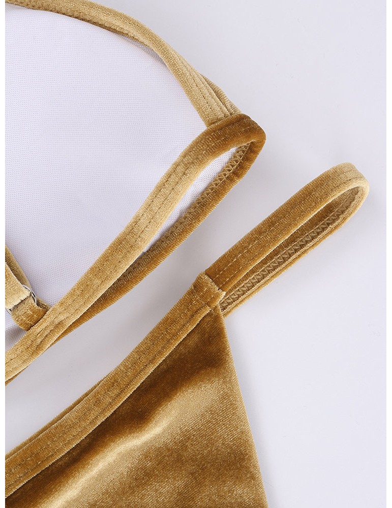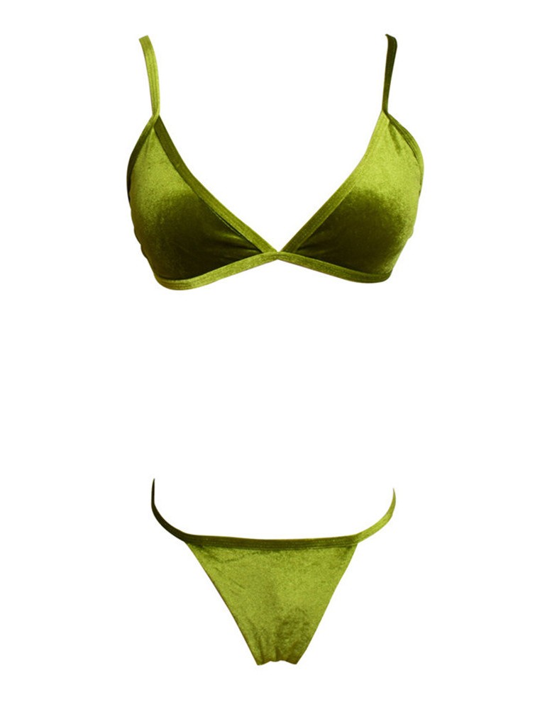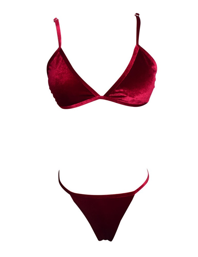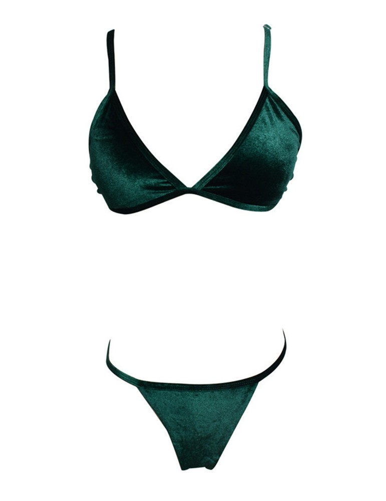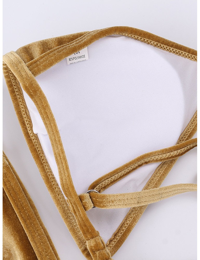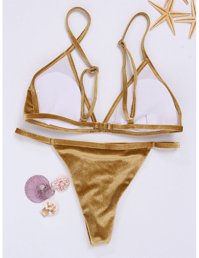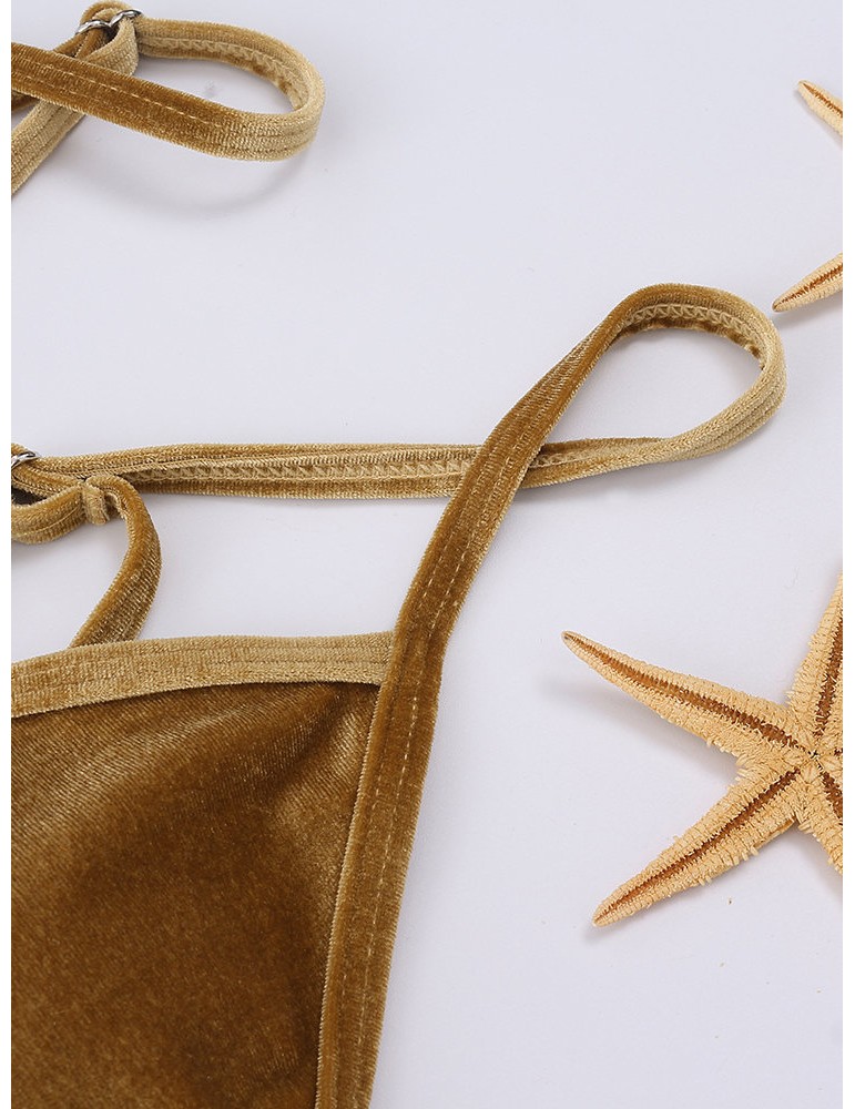 Sexy Pleuche Padding Breathable Backless Bikini Sets Swimwear For Women