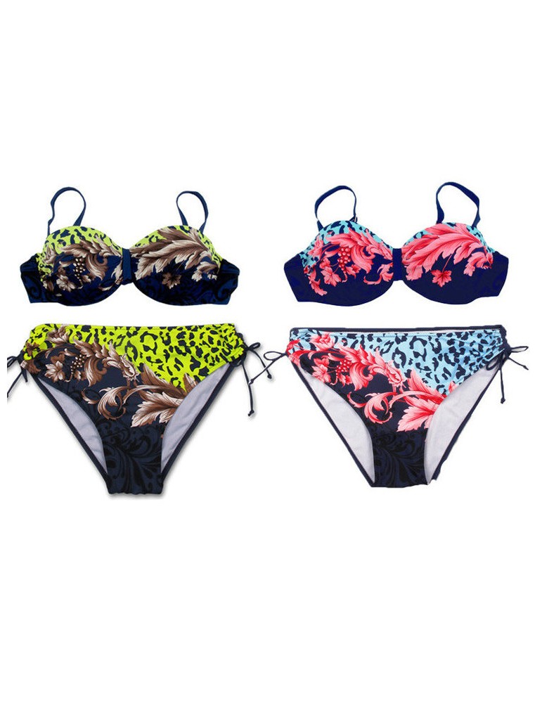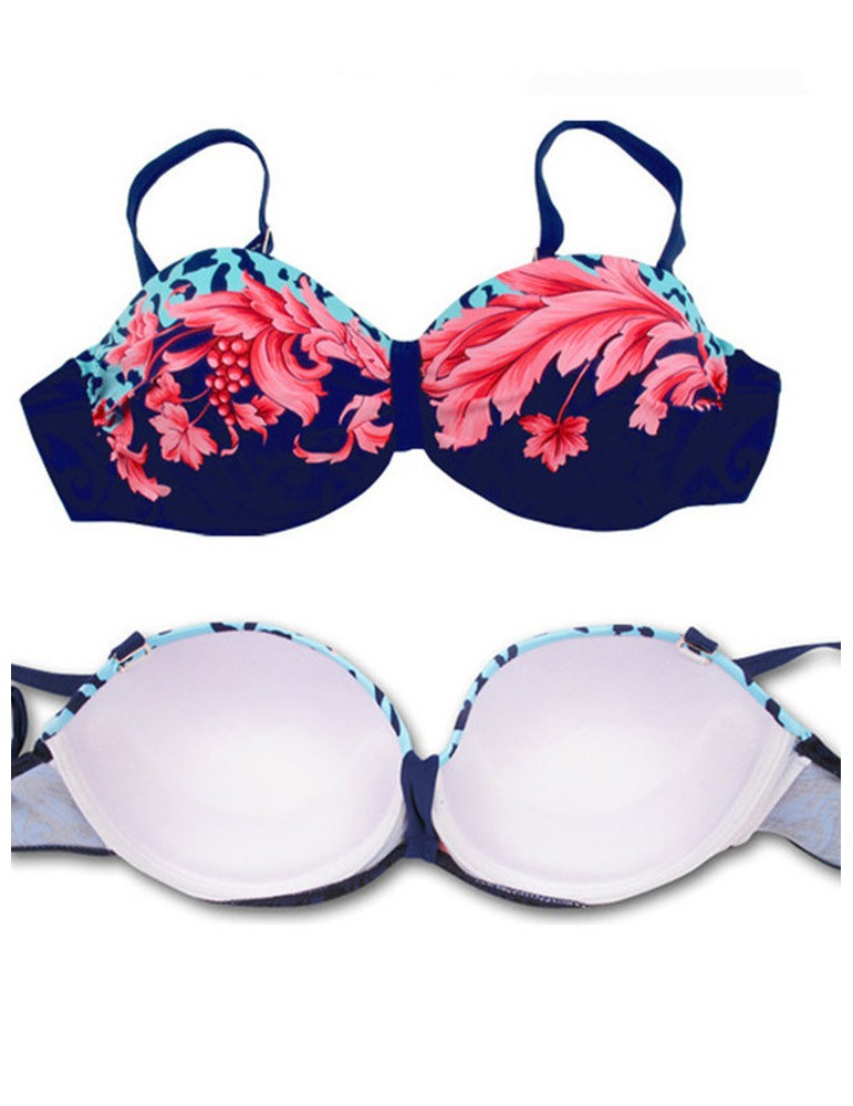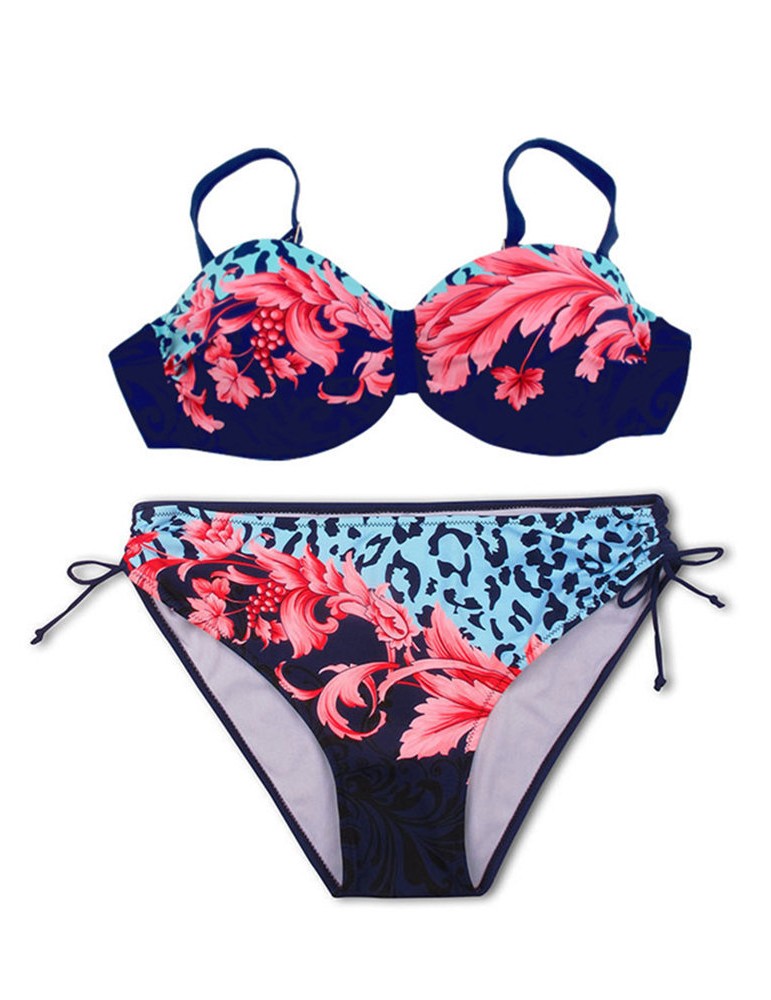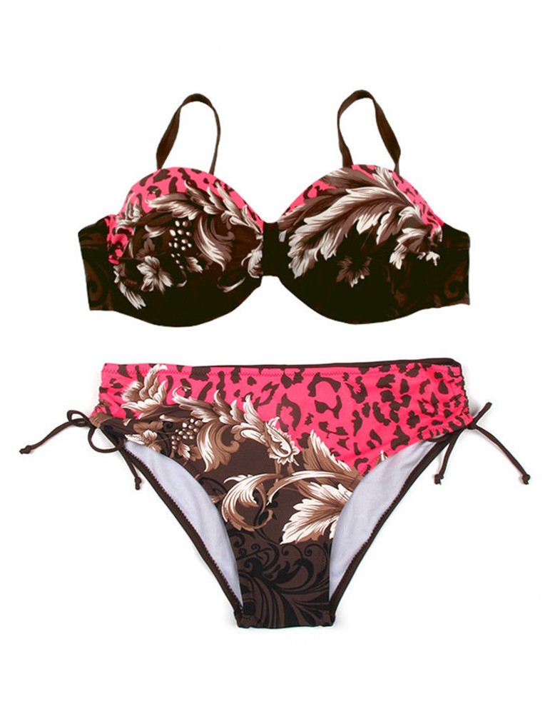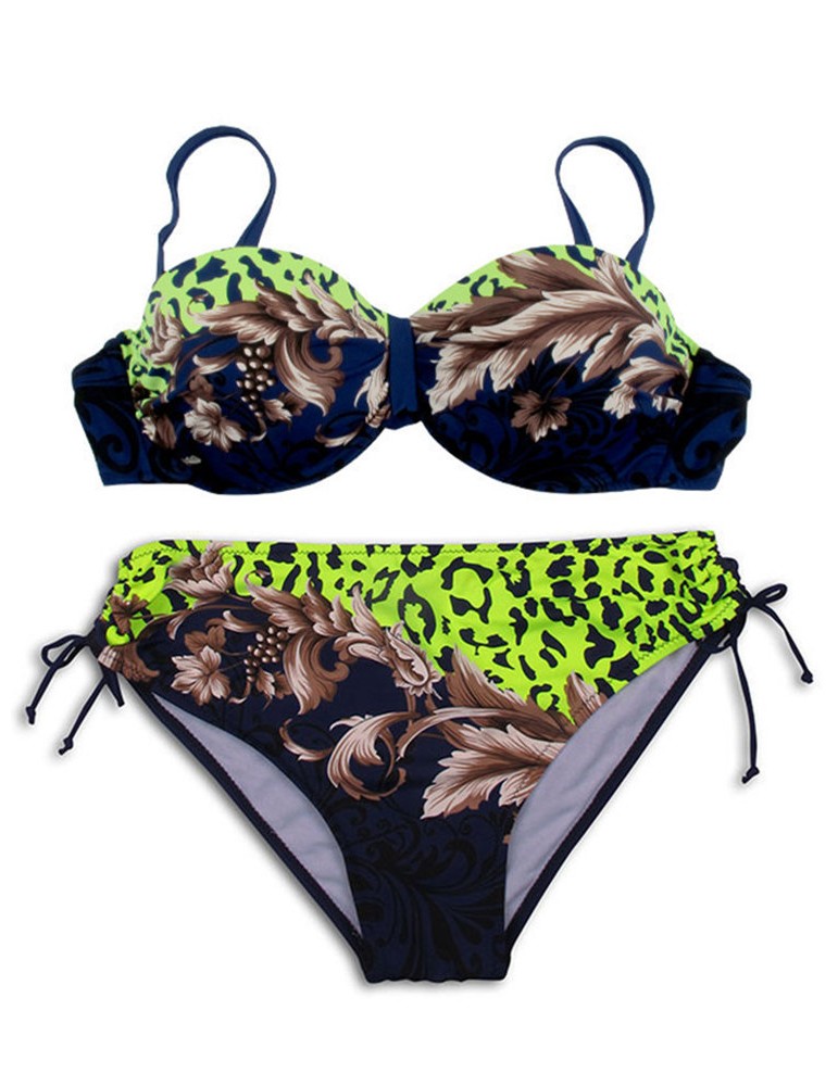 Sexy Plus Size Plant Printed Push Up String Bikini Sets
