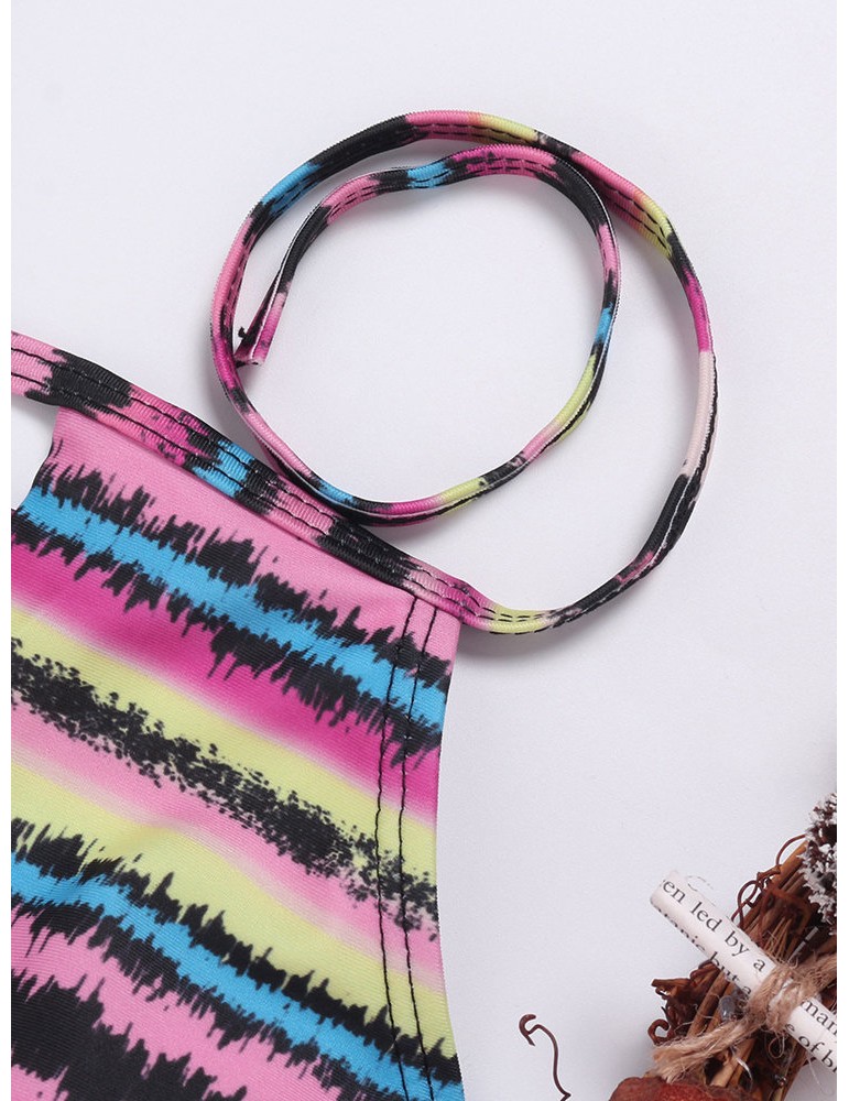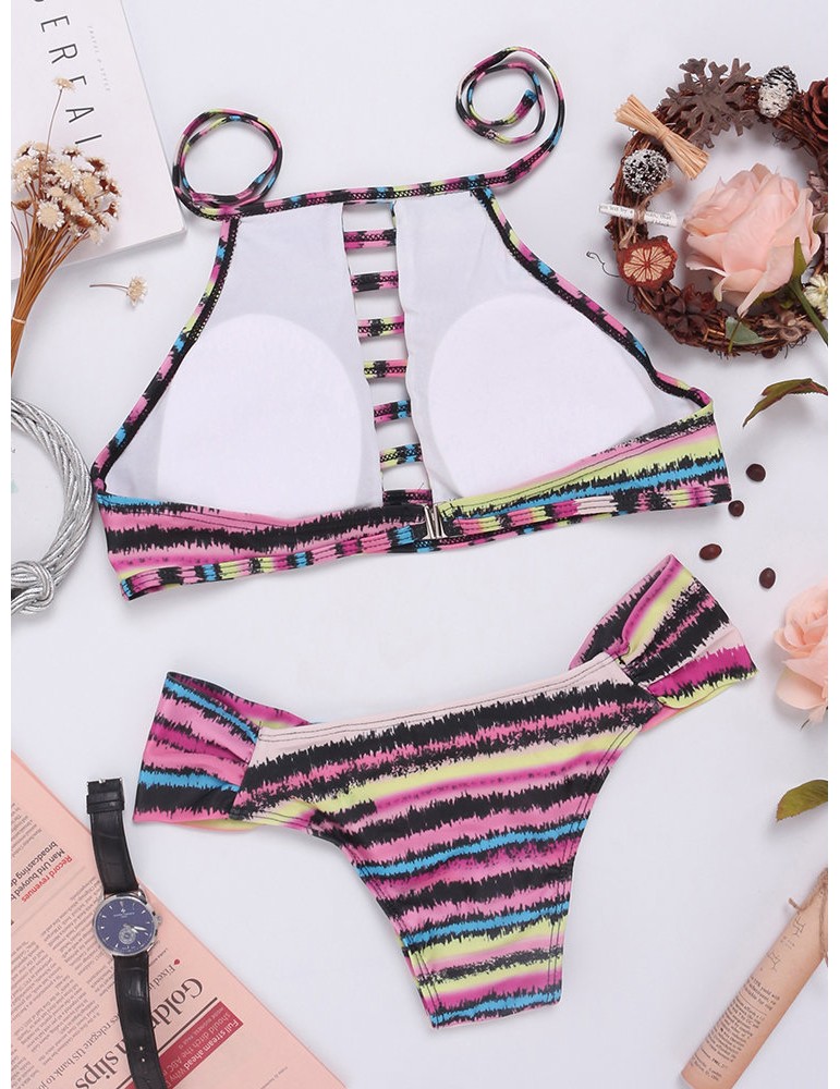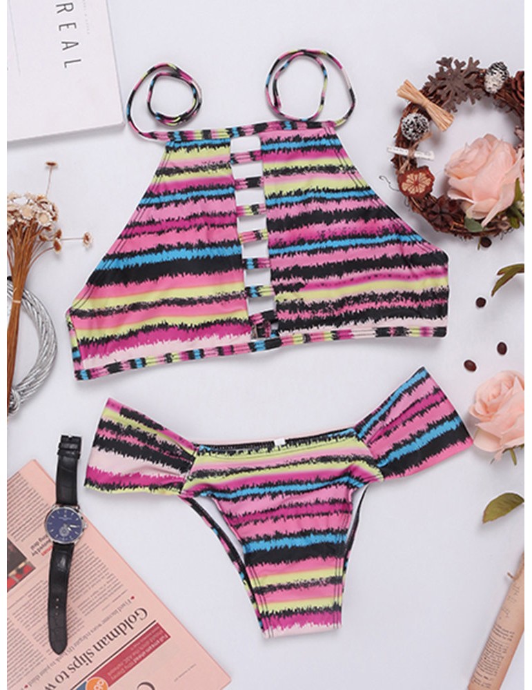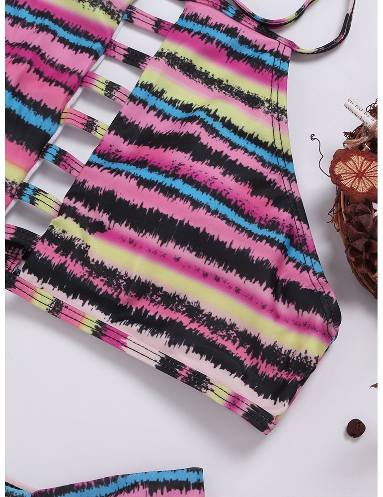 Striped Halter Sexy Printed Hollow Beach Swimwear For Women