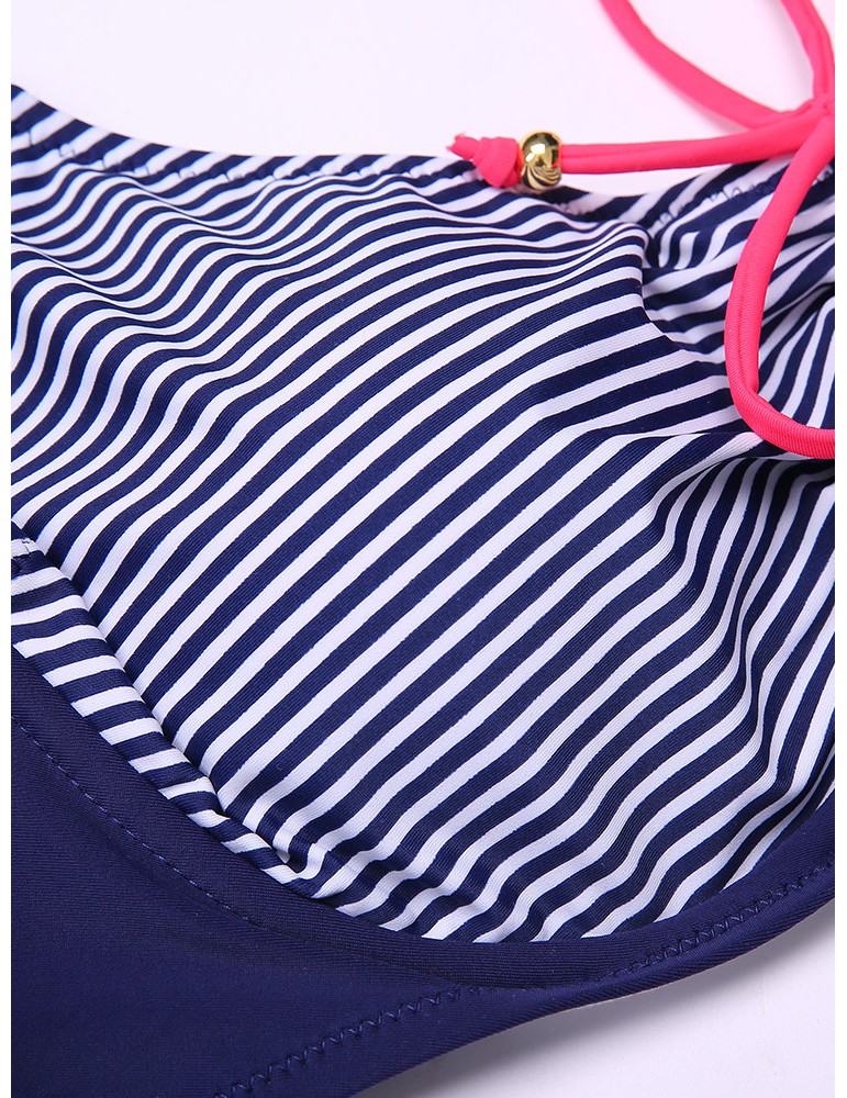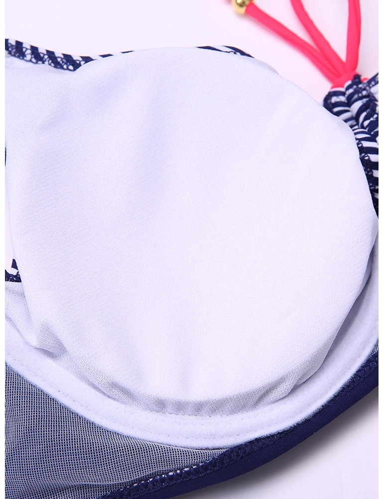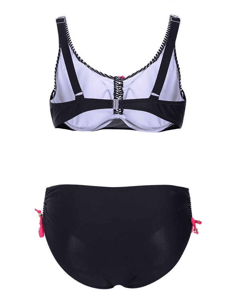 Plus Size Sexy Striped Bowknot Agraffe Elastic Underwire Bra Bikini Sets