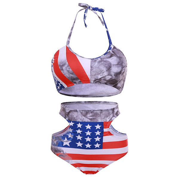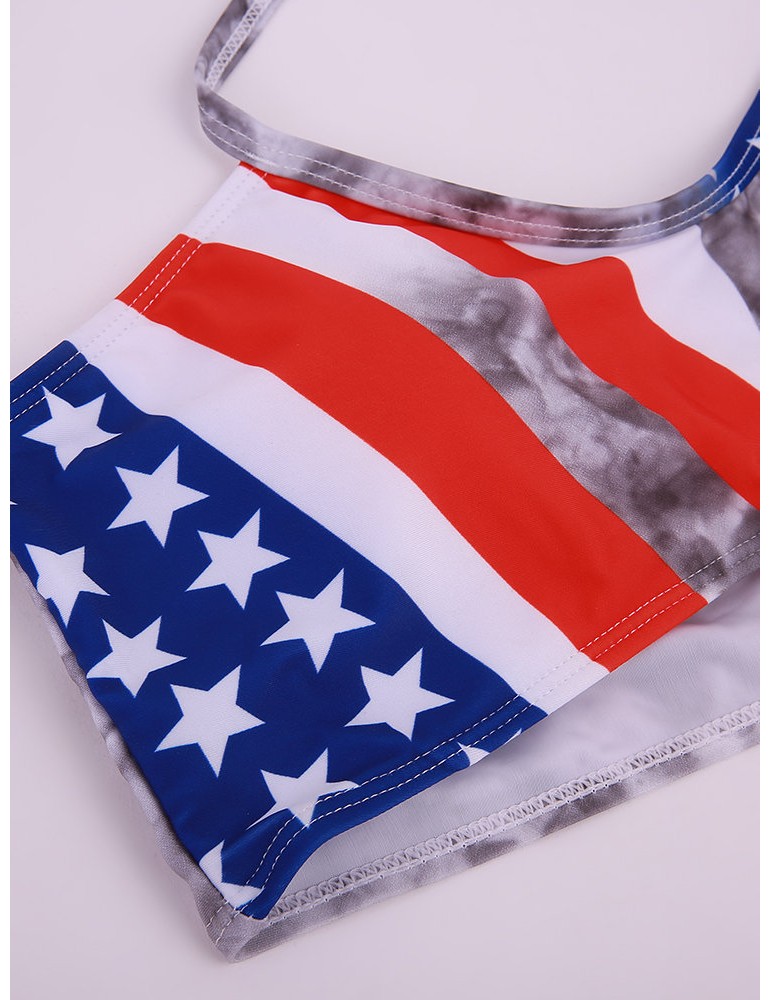 High Waisted Two Piece Wireless American Flag Backless Sexy Swimsuit