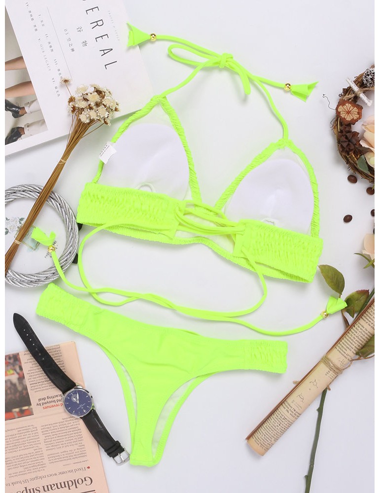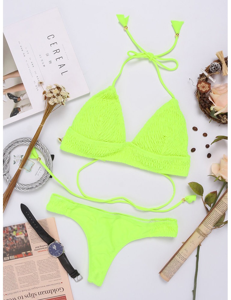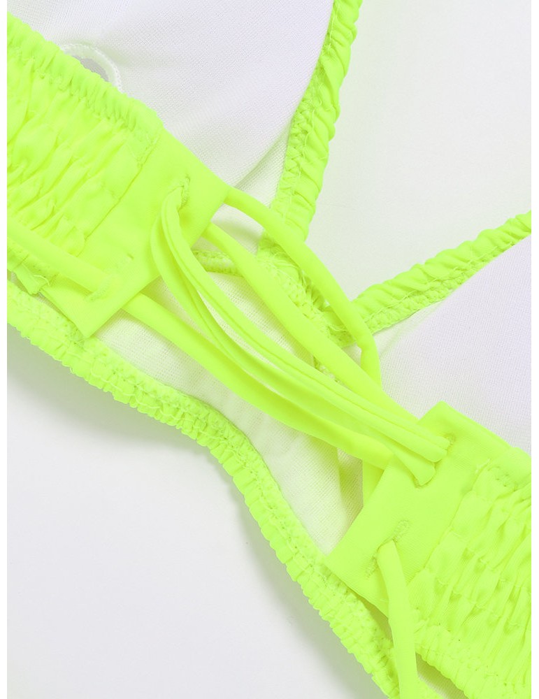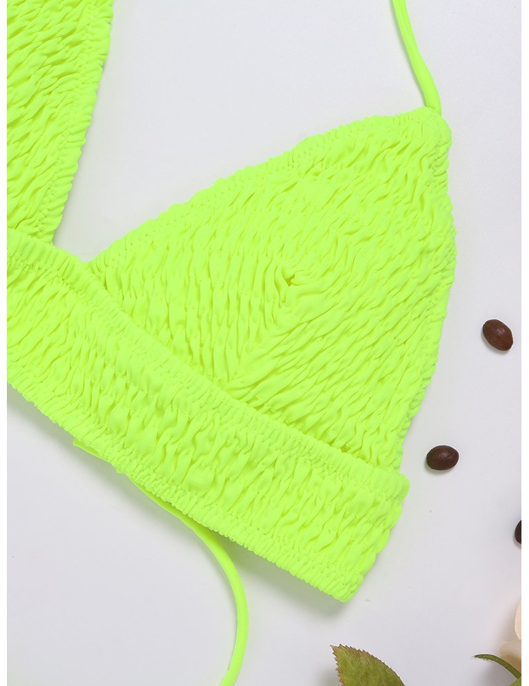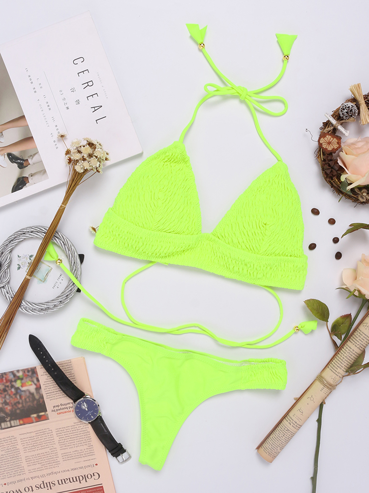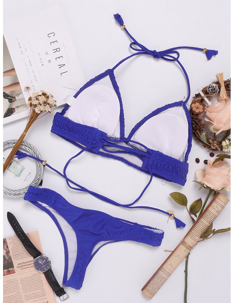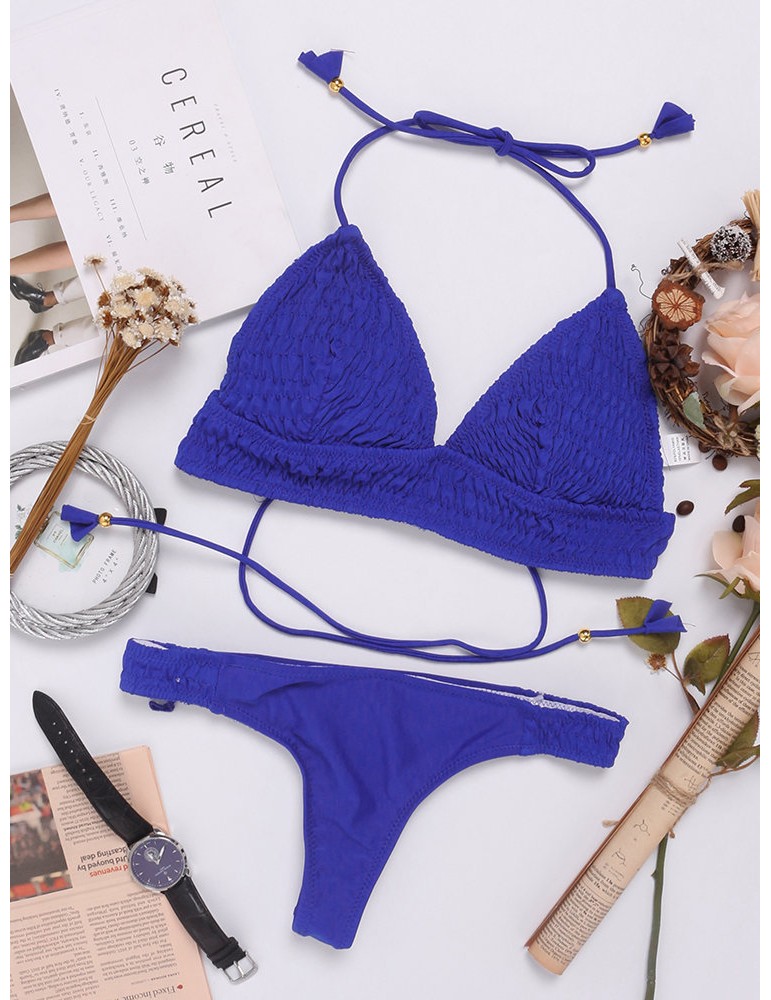 Halter Backless Deep V Gather Triangle Bikini Sets Swimsuit Swimwear For Women