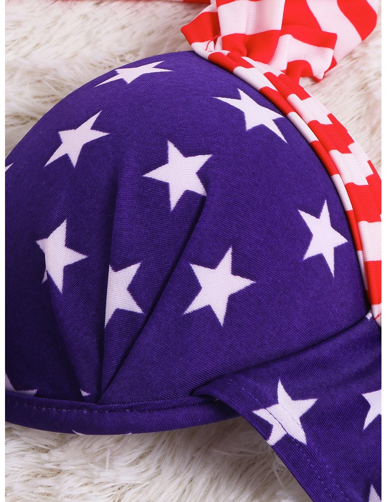 American Flag Criss-cross Backless Lace Up Padding One-pieces Sexy Bikinis