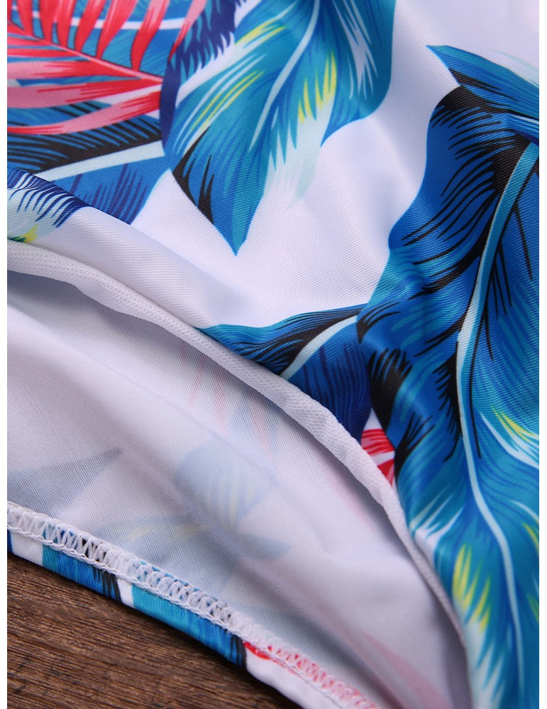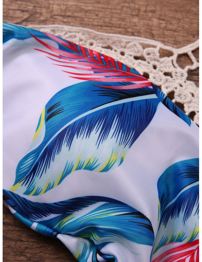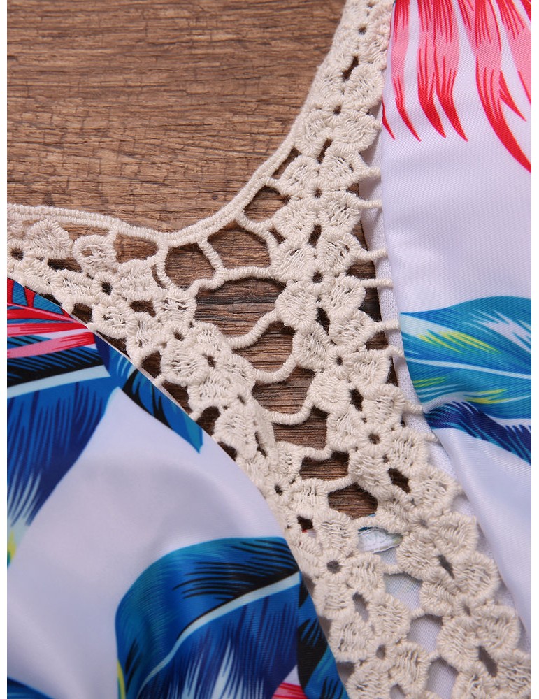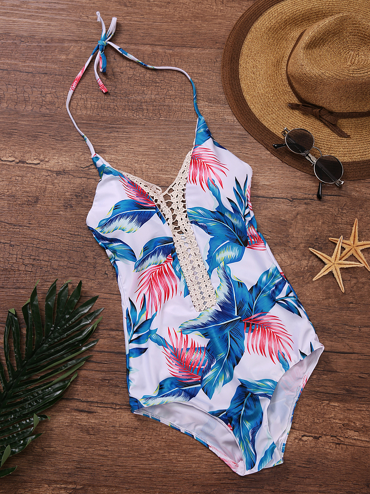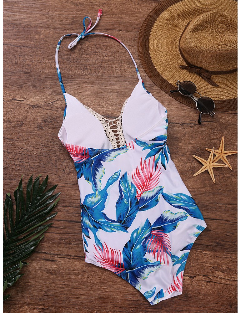 Front Hollow Out Floral Printing Swimsuit Halter Wireelss Triangle Monokini