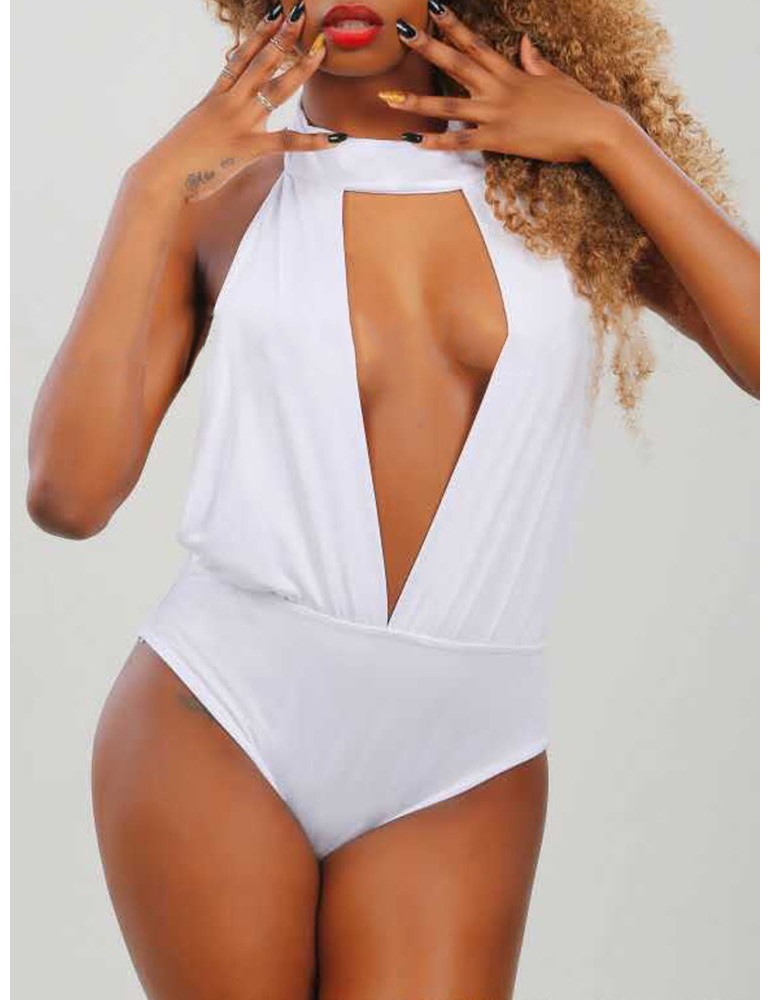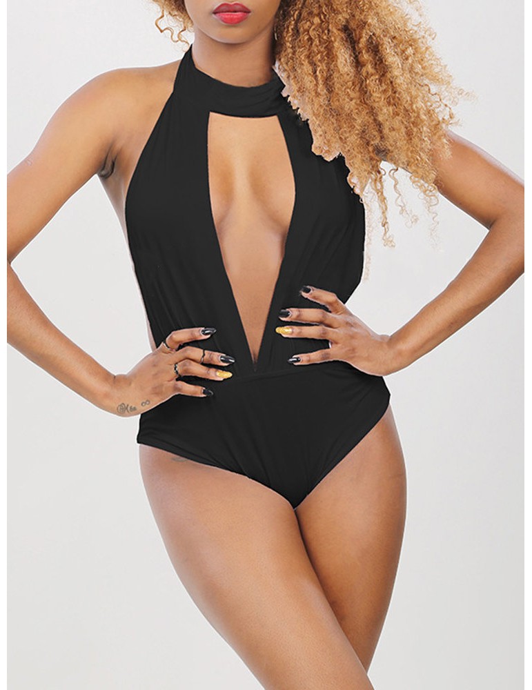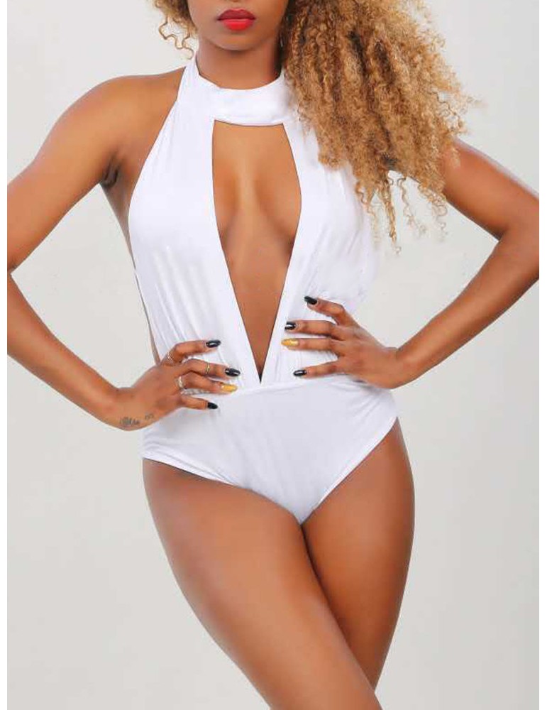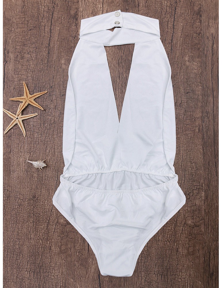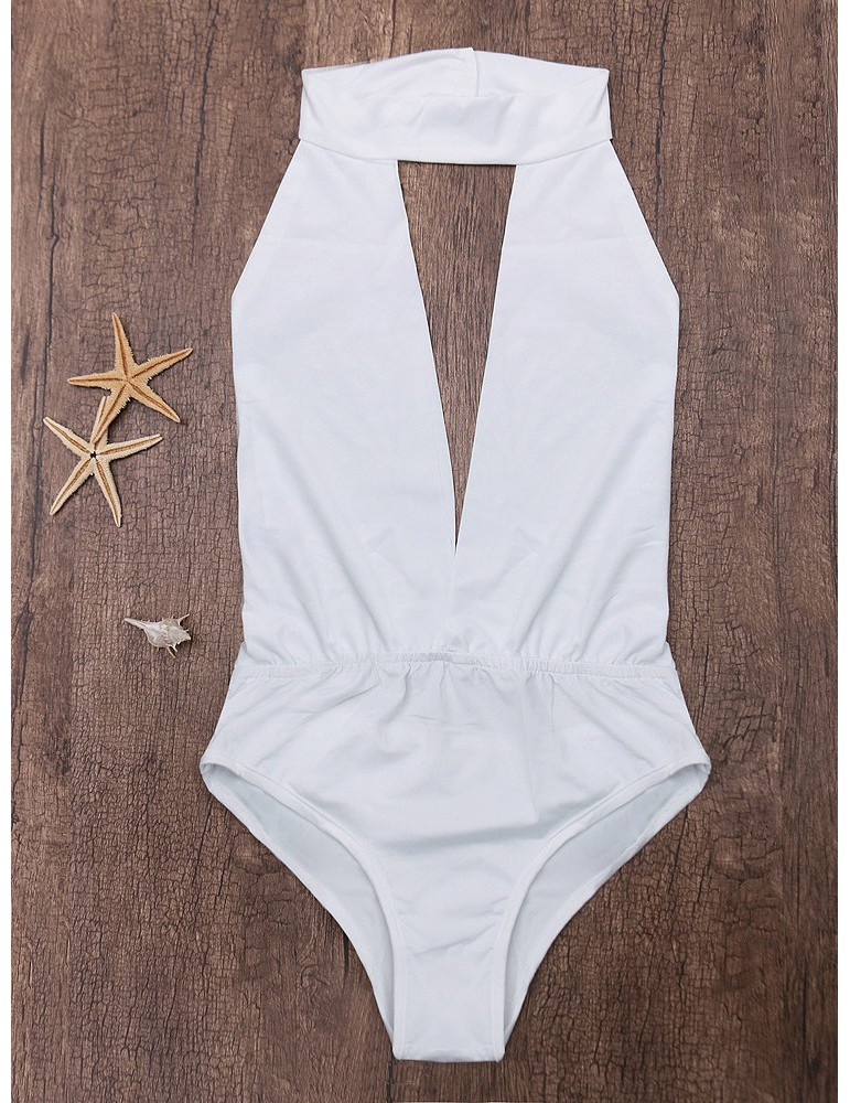 Sexy Solid Color Halter Backless One Piece Swimsuit For Women