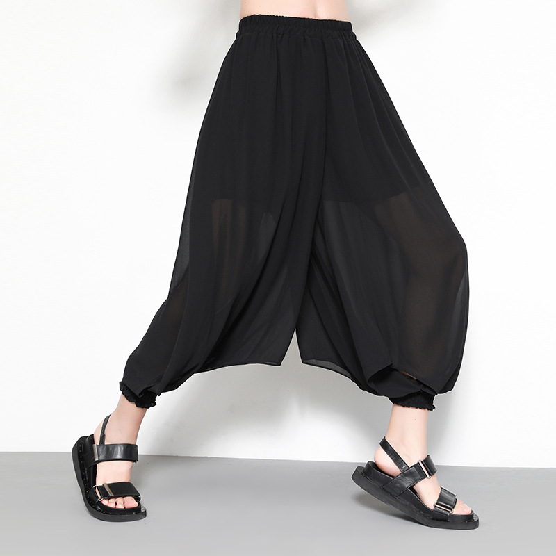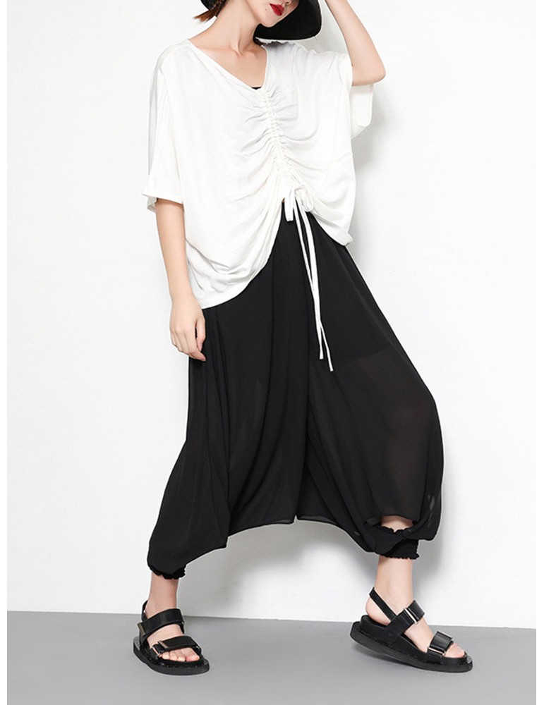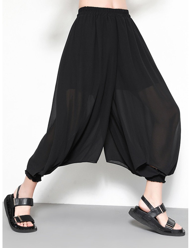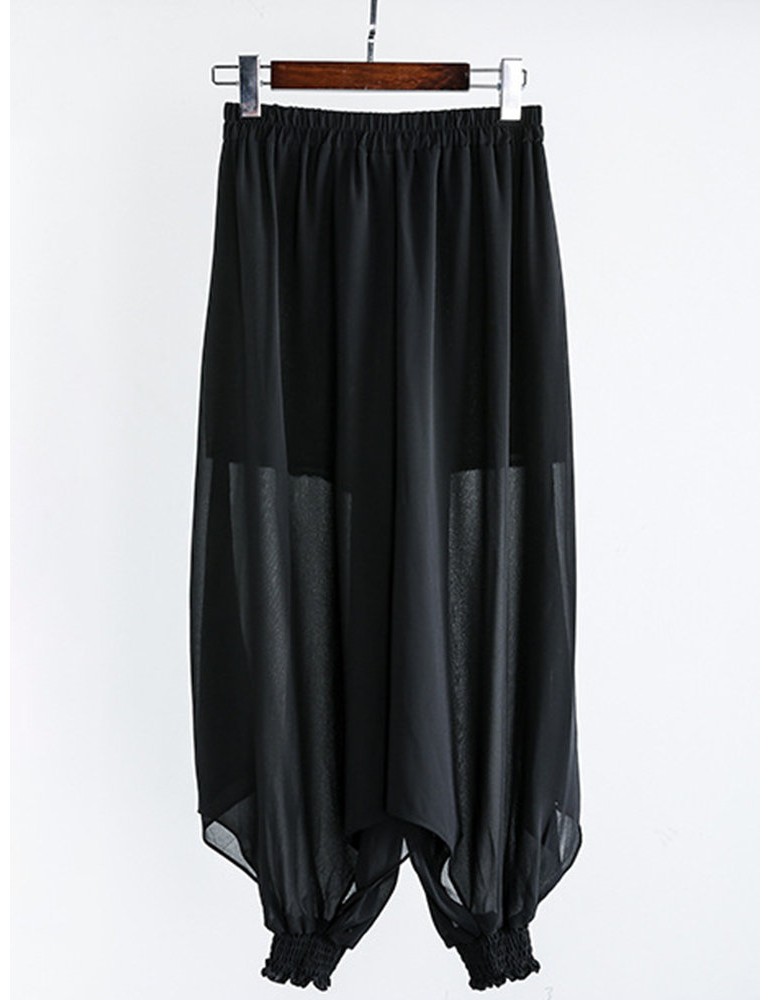Black Loose Elastic Waist Solid Color Casual Harem Pants